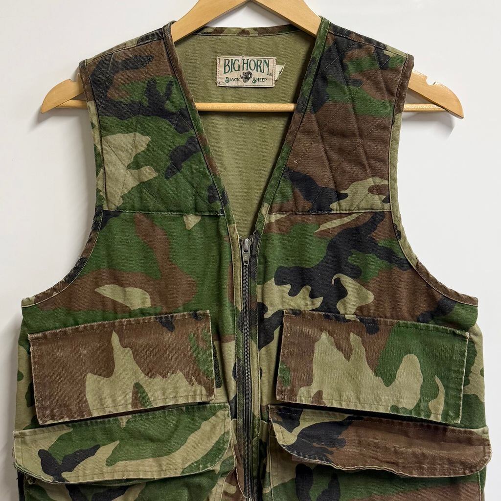 〜90's BIG HORN BLACK SHEEP ハンティングベスト 迷彩柄 多色 Sサイズ No.M897