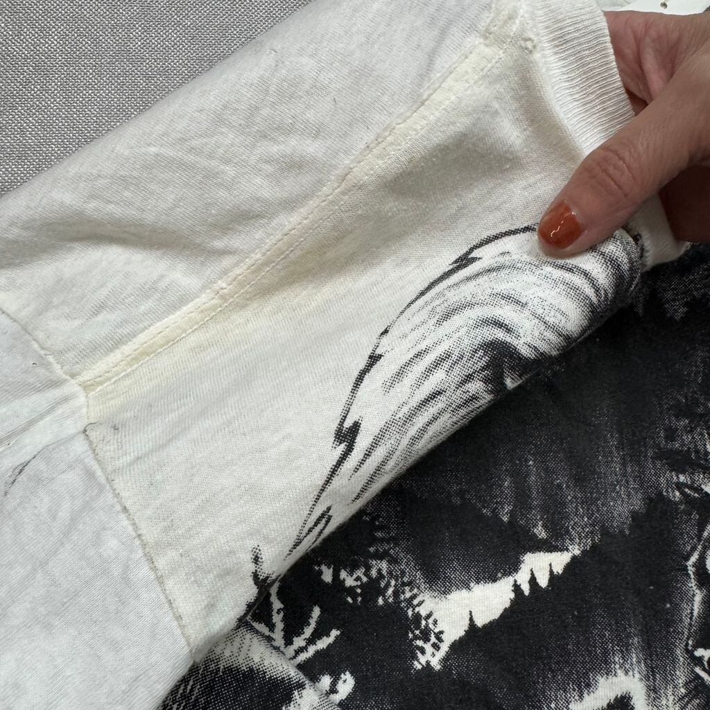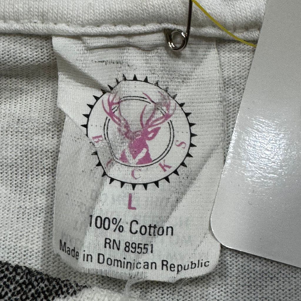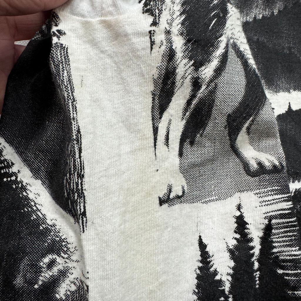 ~90s BUCKS 動物 総柄 モノトーン アニマル 両面プリント アートプリント Tシャツ 白×黒 Lサイズ No.EA277