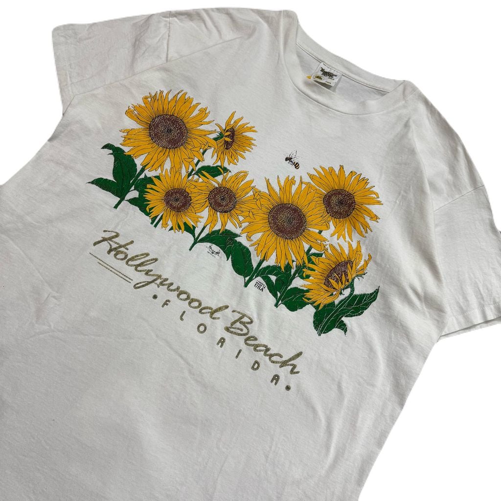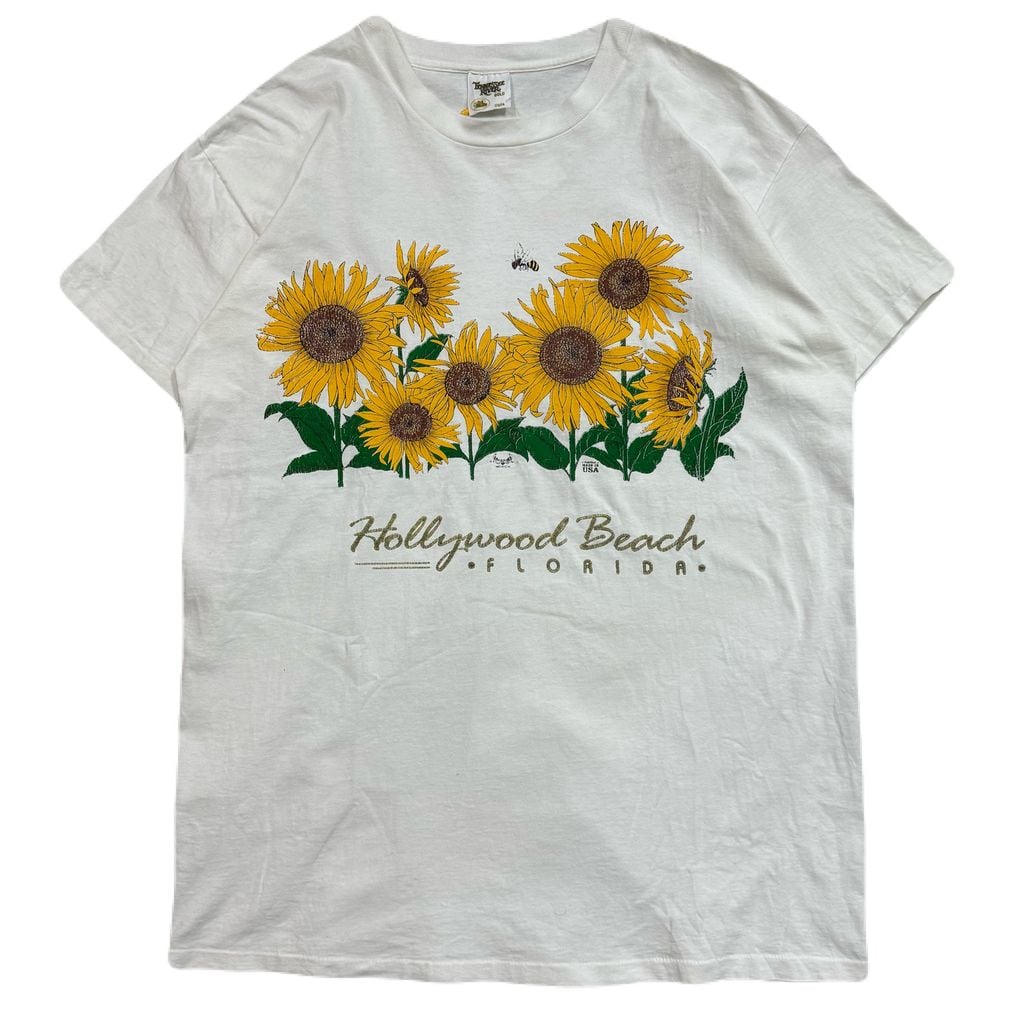 USA製 90s TENNESSEE RIVER Hollywood Beach FLORIDA テネシーリバー 向日葵 ひまわり プリント Tシャツ サイズ One Size Fits All No.EA278