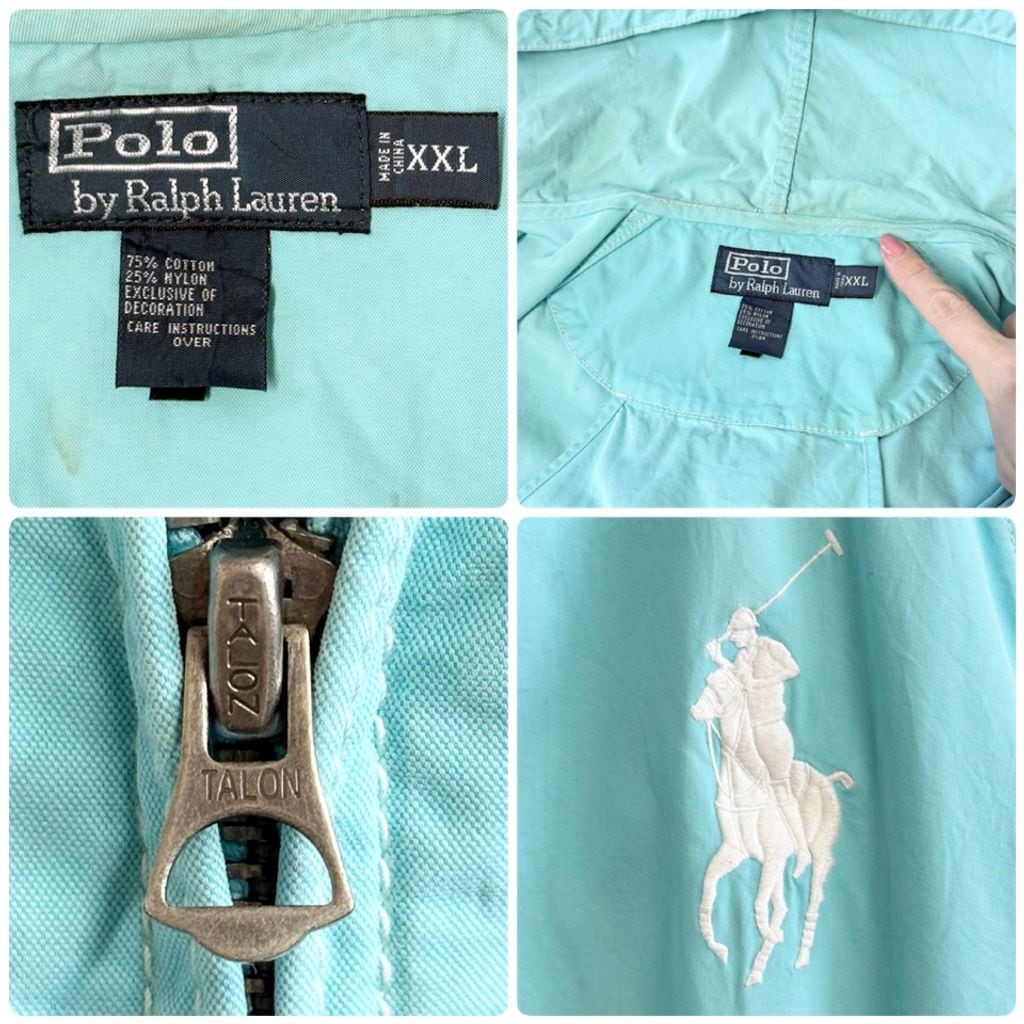 Polo Ralph Lauren ポロ ラルフローレン ビッグポニー フーデッドジャケット TALON タロンジップ ライトブルー ティファニーブルー XXLサイズ No.M933