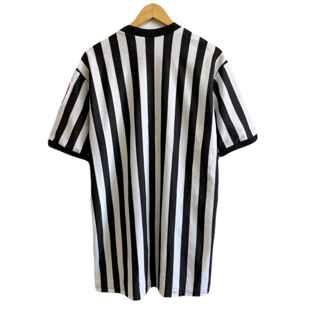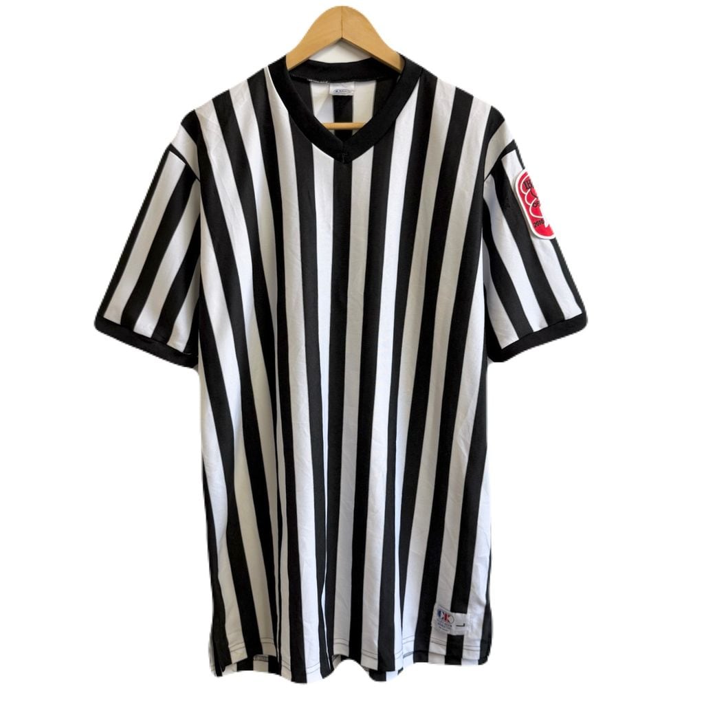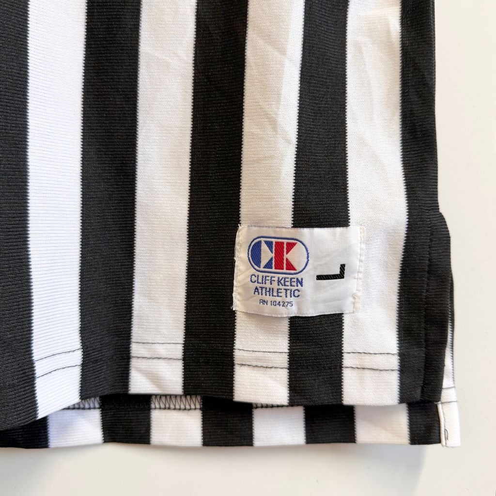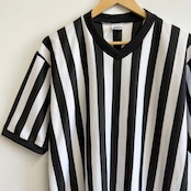 カナダ製 CLIFF KEEN ATHLETIC レフェリーシャツ ストライプ Vネック 半袖 黒×白 Lサイズ No.M939