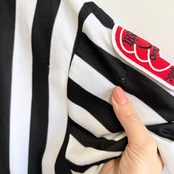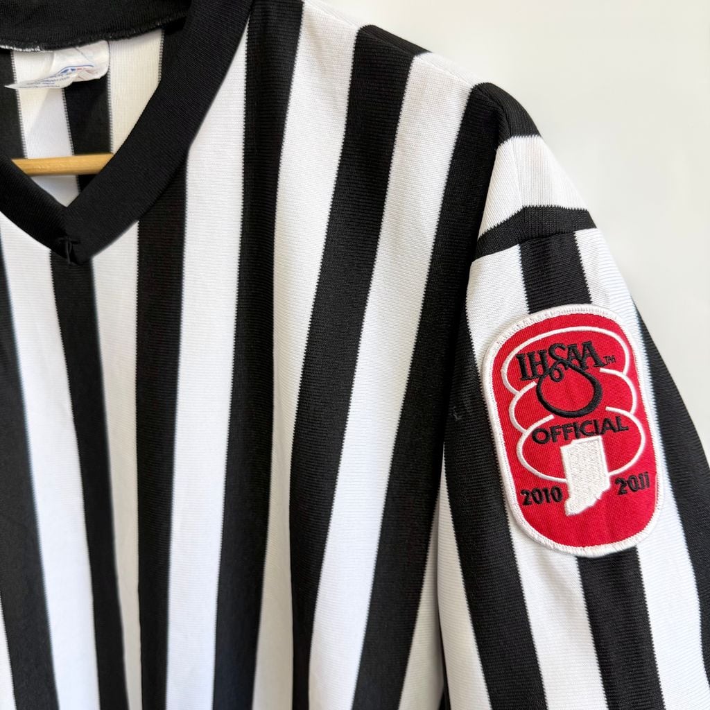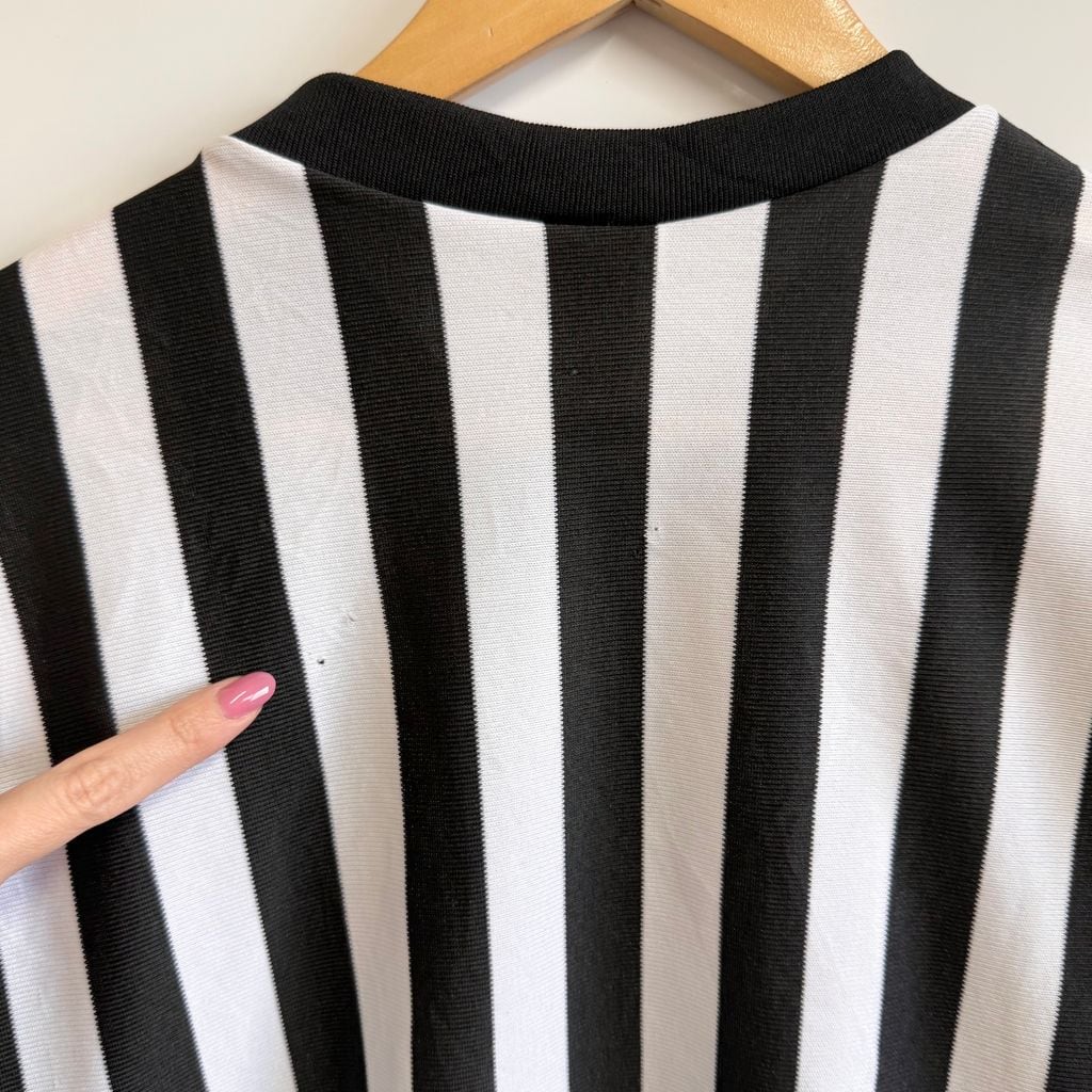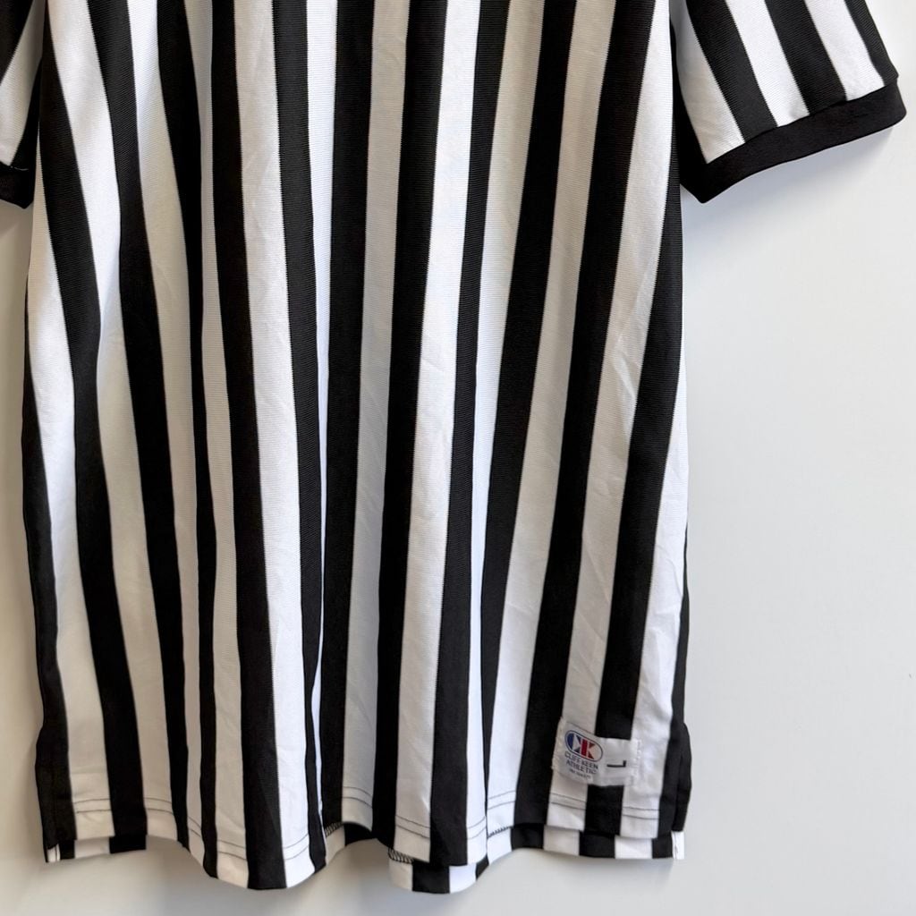 カナダ製 CLIFF KEEN ATHLETIC レフェリーシャツ ストライプ Vネック 半袖 黒×白 Lサイズ No.M939