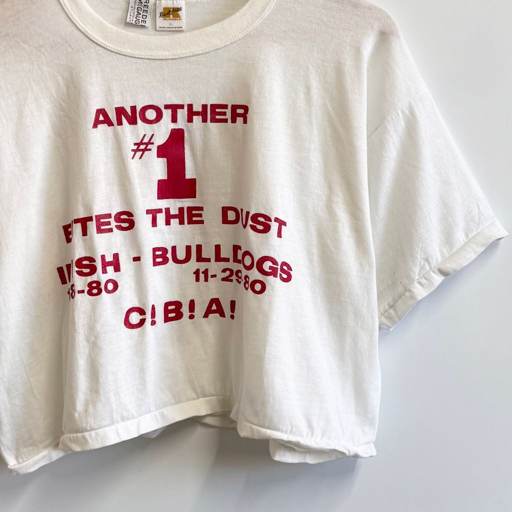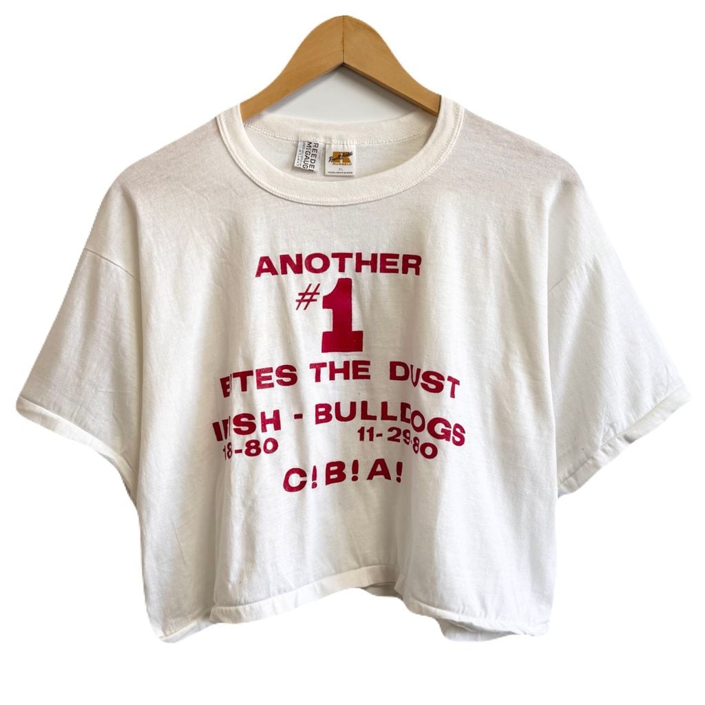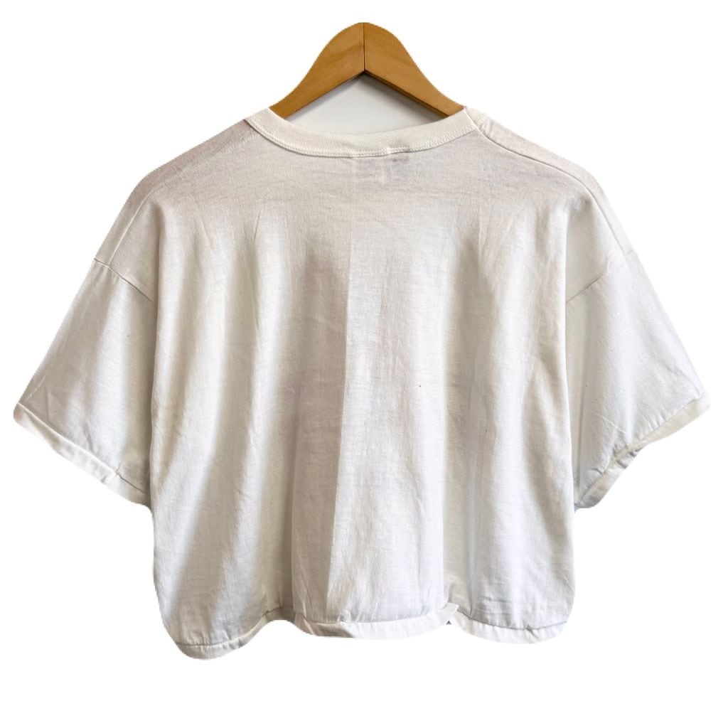 80's vintage ビンテージ USA製 Russell Athletic ラッセルアスレティック カスタム クロップド ショート丈 カレッジ シングルステッチ 半袖Tシャツ 白 XLサイズ No.M942