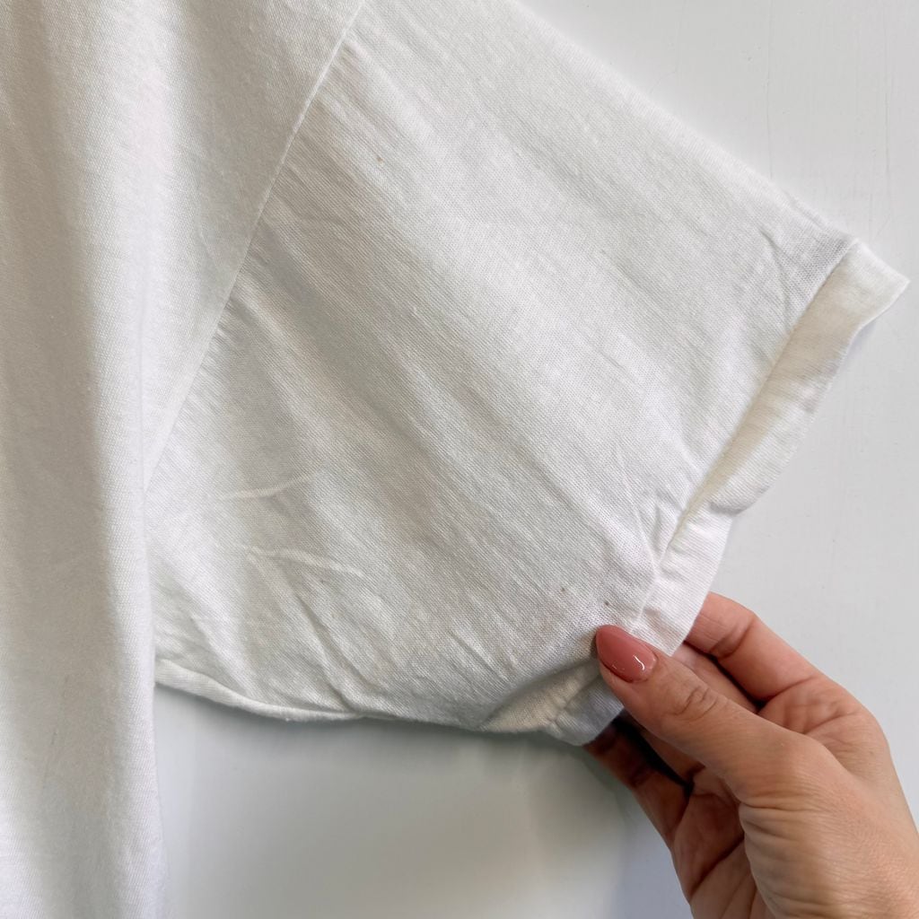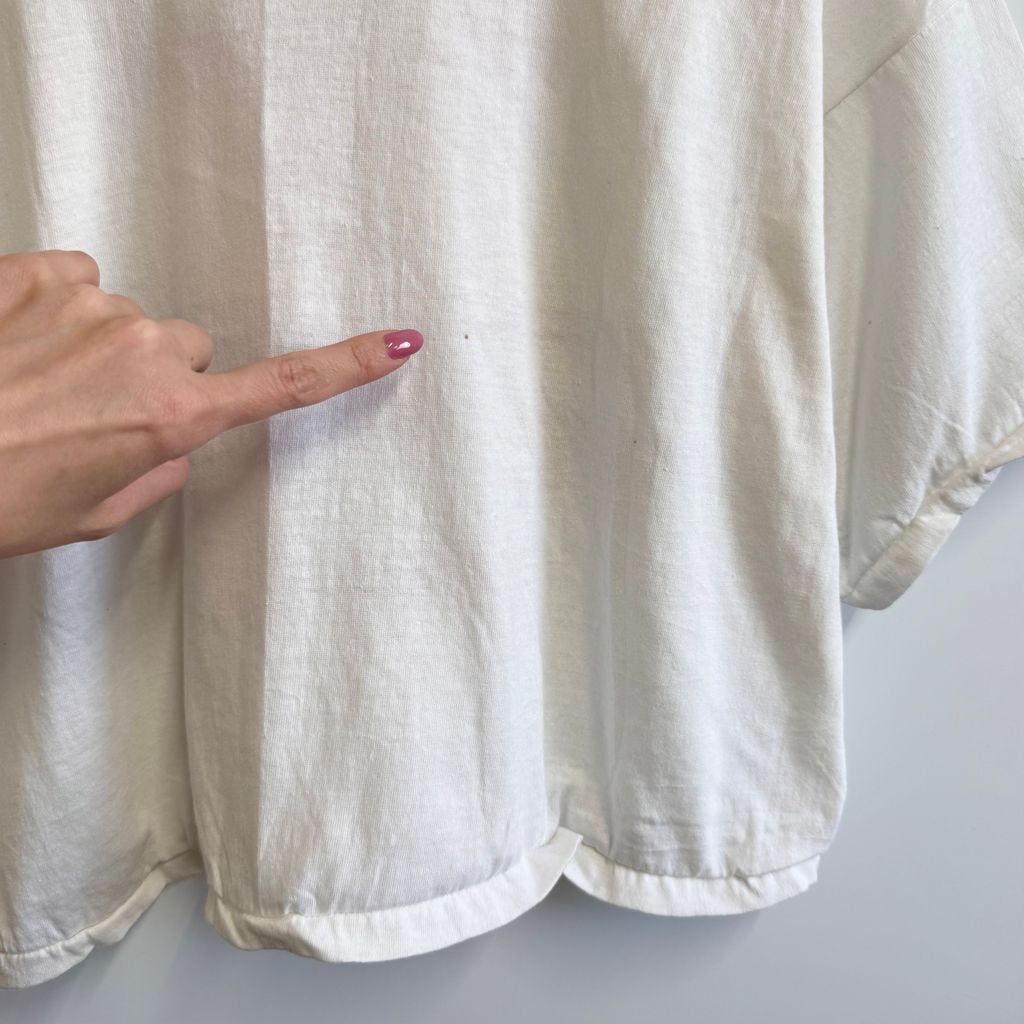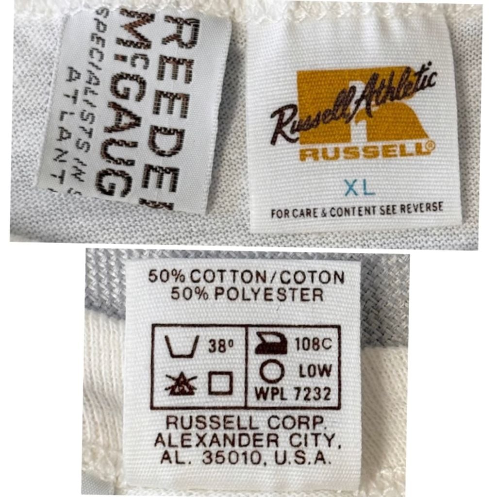 80's vintage ビンテージ USA製 Russell Athletic ラッセルアスレティック カスタム クロップド ショート丈 カレッジ シングルステッチ 半袖Tシャツ 白 XLサイズ No.M942