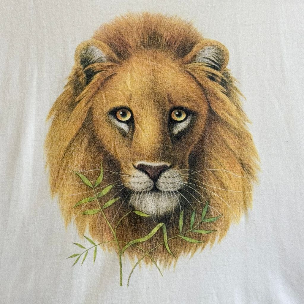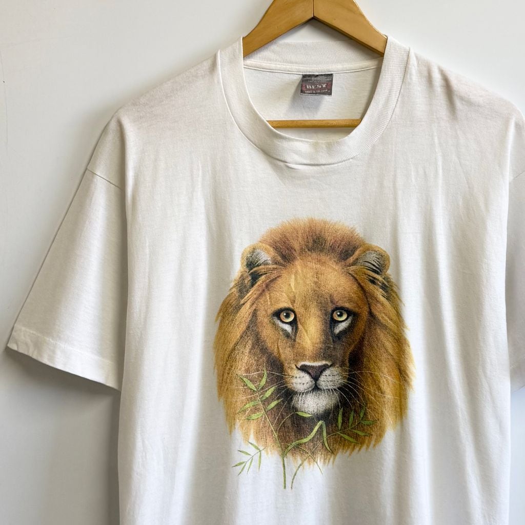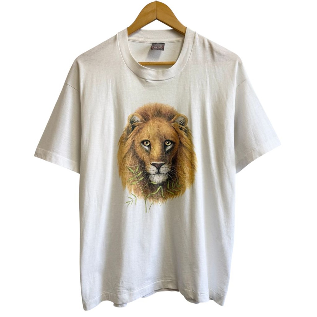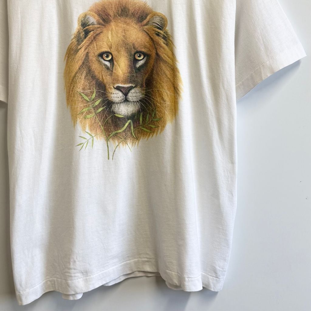 FRUIT OF THE LOOM フルーツオブザルーム ライオンアート グラフィック アニマルプリント シングルステッチ 半袖Tシャツ 白 Lサイズ No.M944