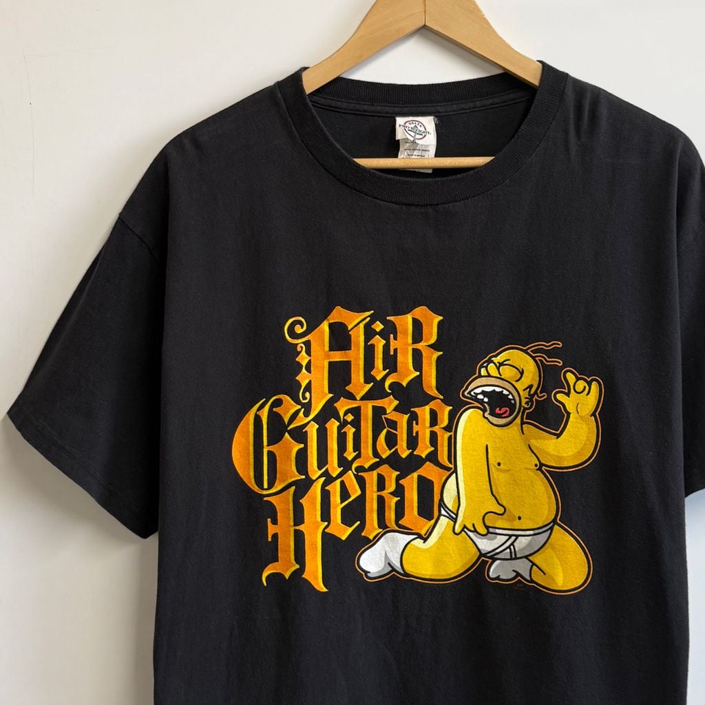 DELTA デルタ シンプソンズ ホーマー エアギター Y2K 半袖Tシャツ 黒 ブラック Lサイズ No.M945