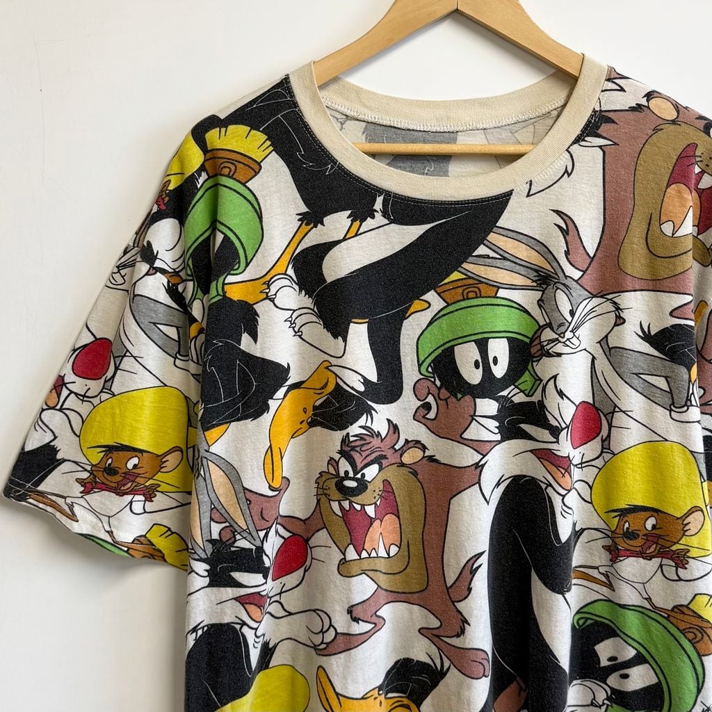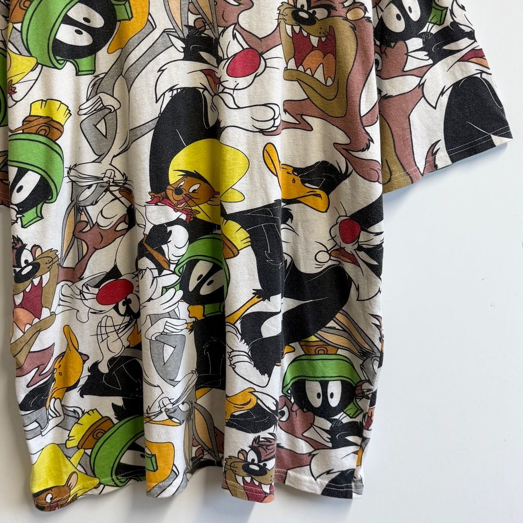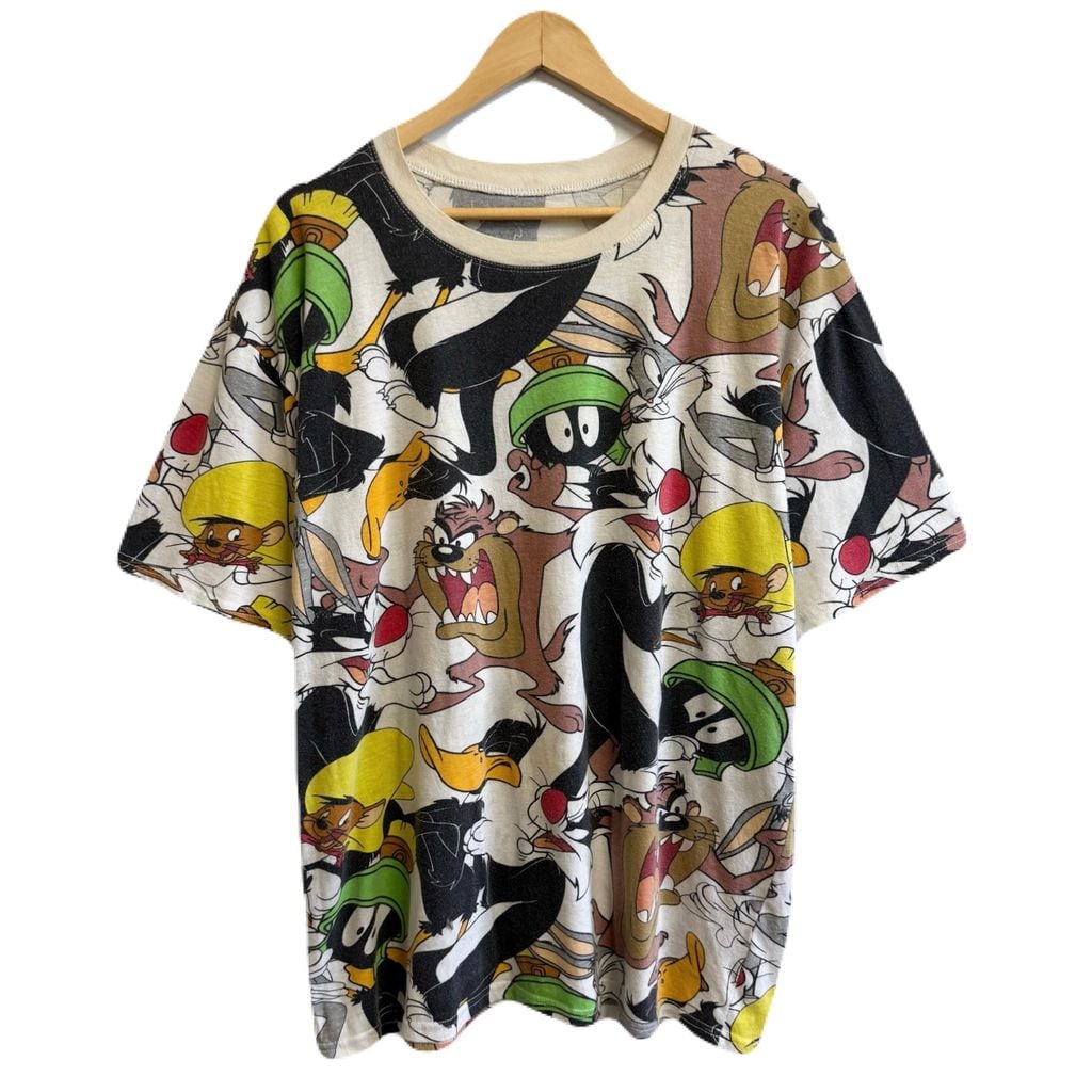 LOONEY TUNES ルーニーチューンズ 総柄 キャラクターTシャツ 半袖Tシャツ 白×多色 XXLサイズ No.M947