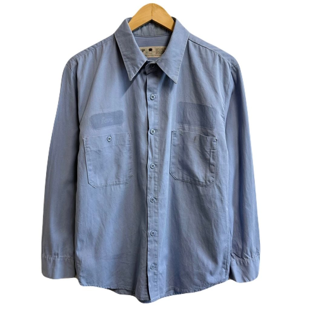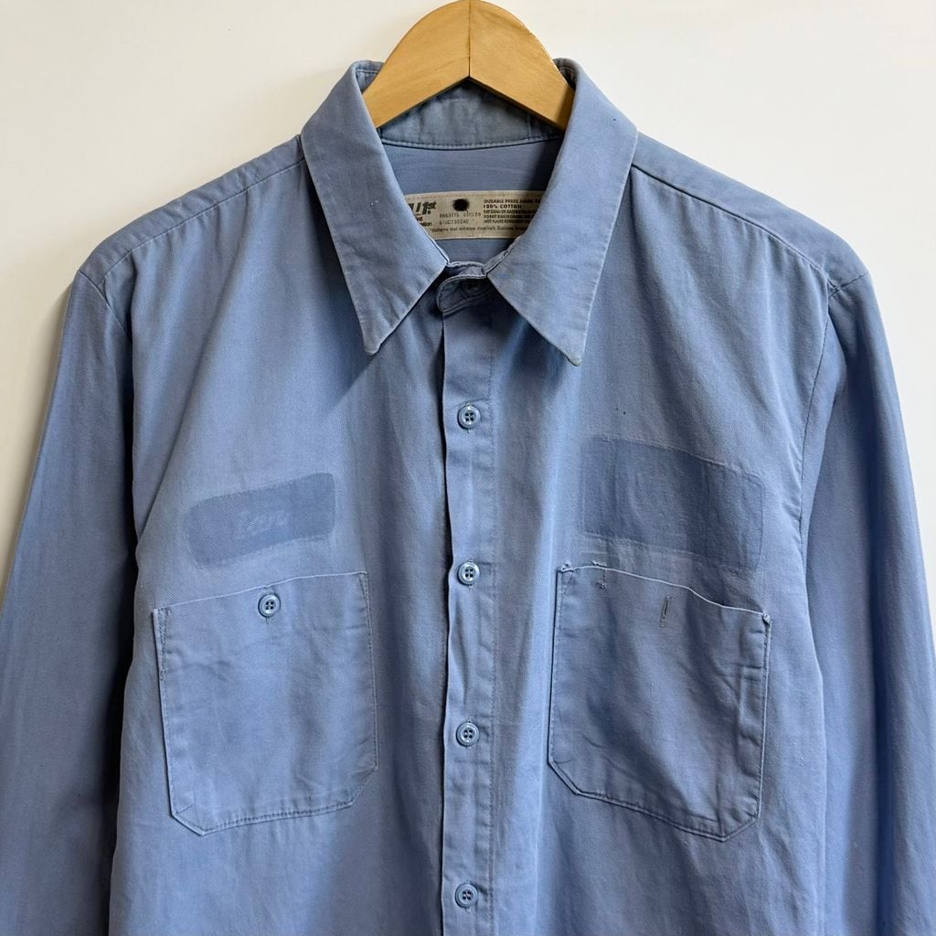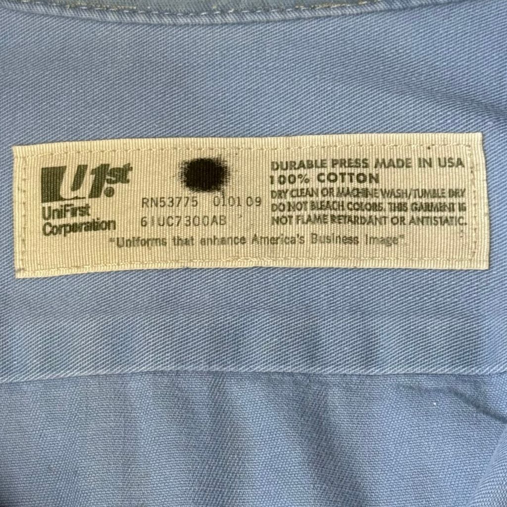 USA製 UniFirst ワークシャツ コットンシャツ ポケット付き 長袖シャツ ライトブルー No.M948