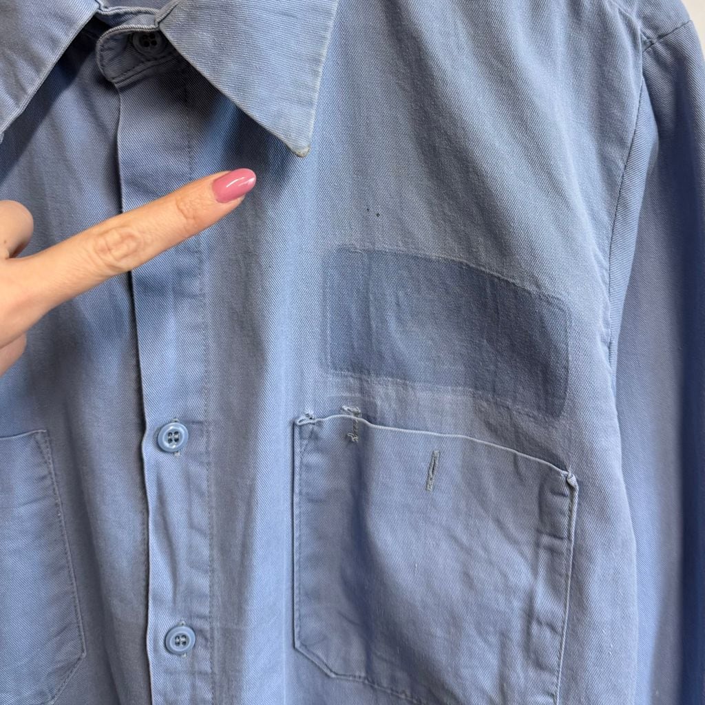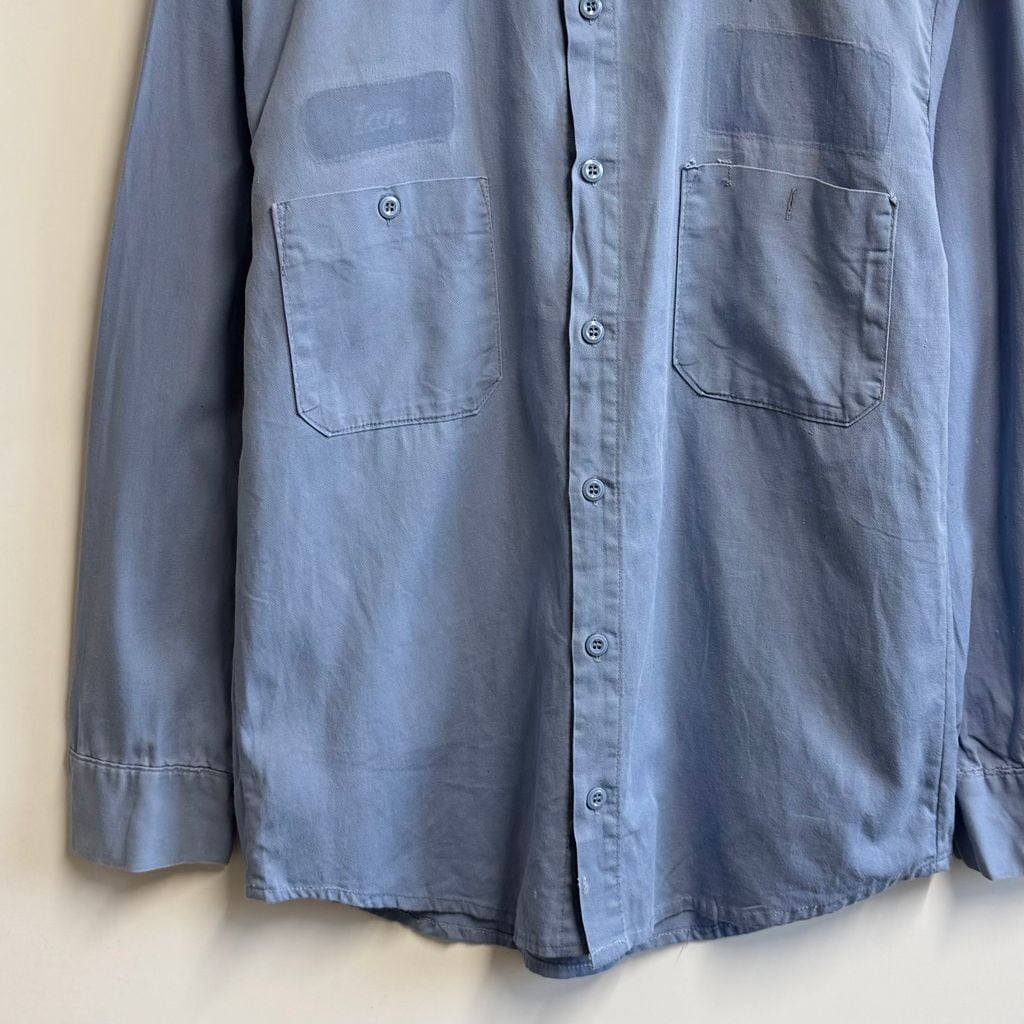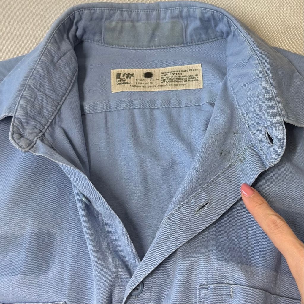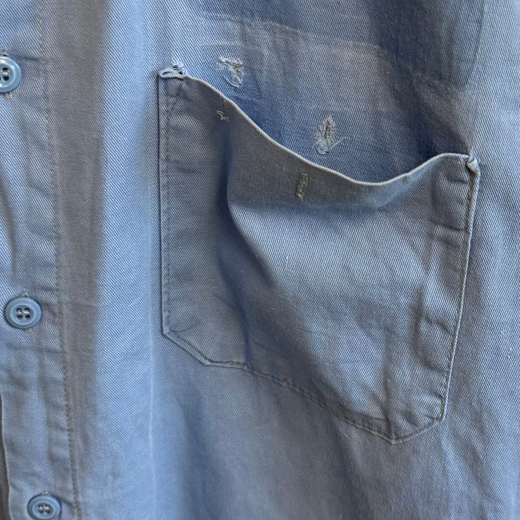 USA製 UniFirst ワークシャツ コットンシャツ ポケット付き 長袖シャツ ライトブルー No.M948