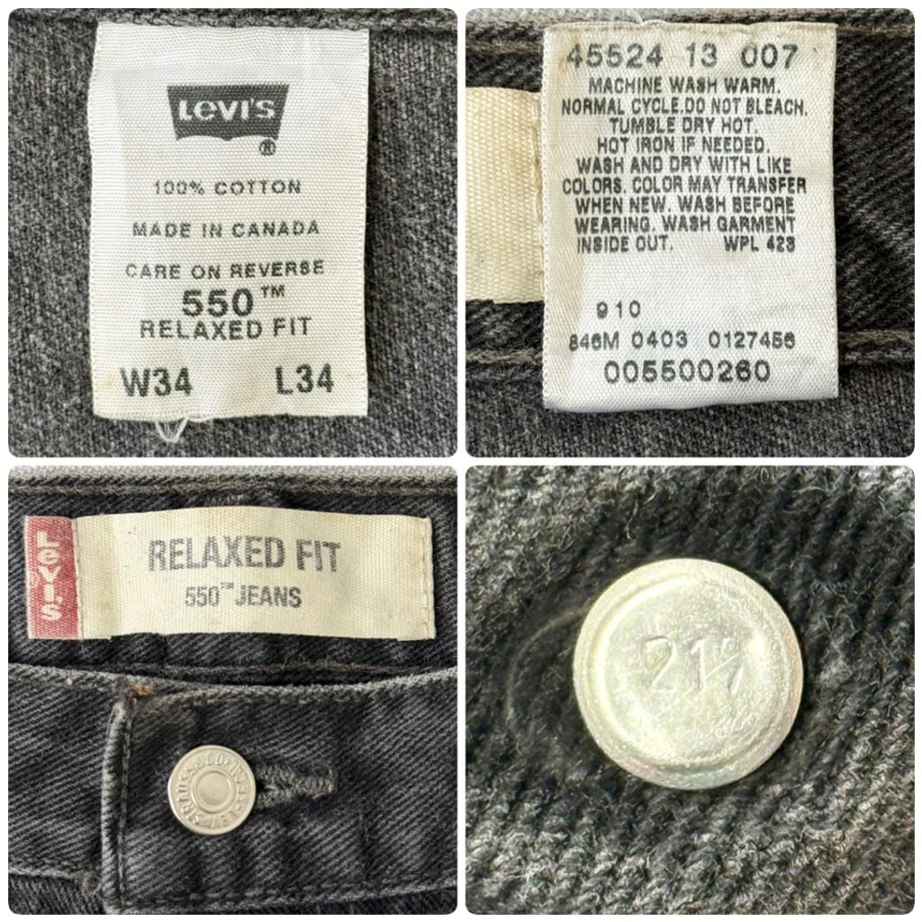 Levi's リーバイス 550 RELAXED FIT ブラックデニムパンツ 黒系 W34×34 No.M952