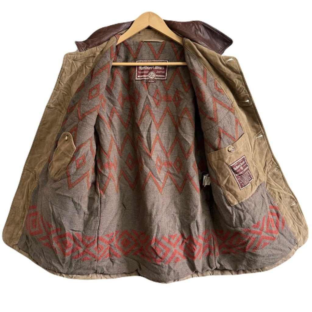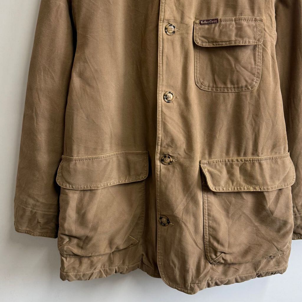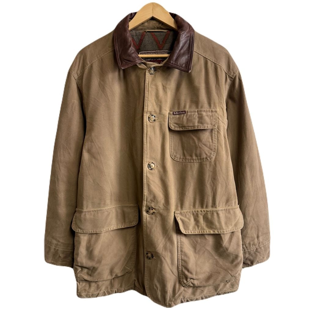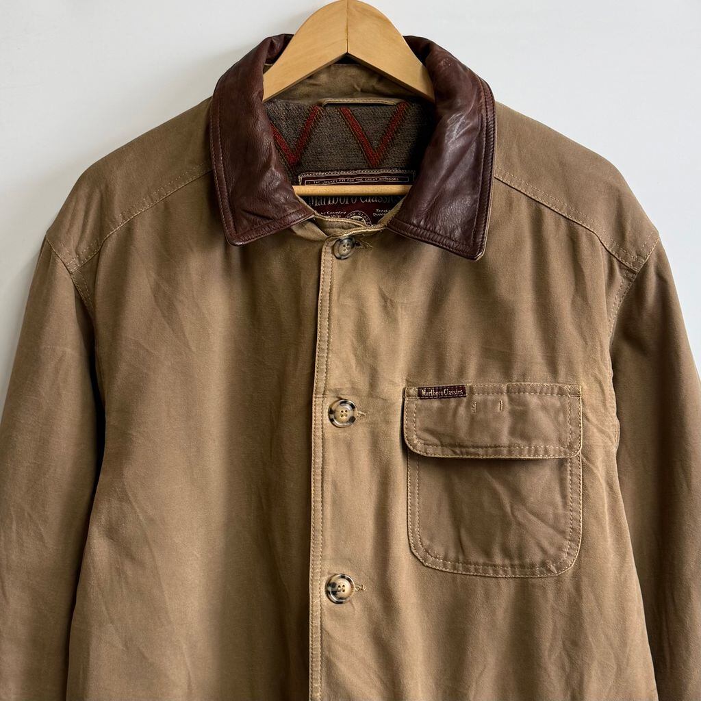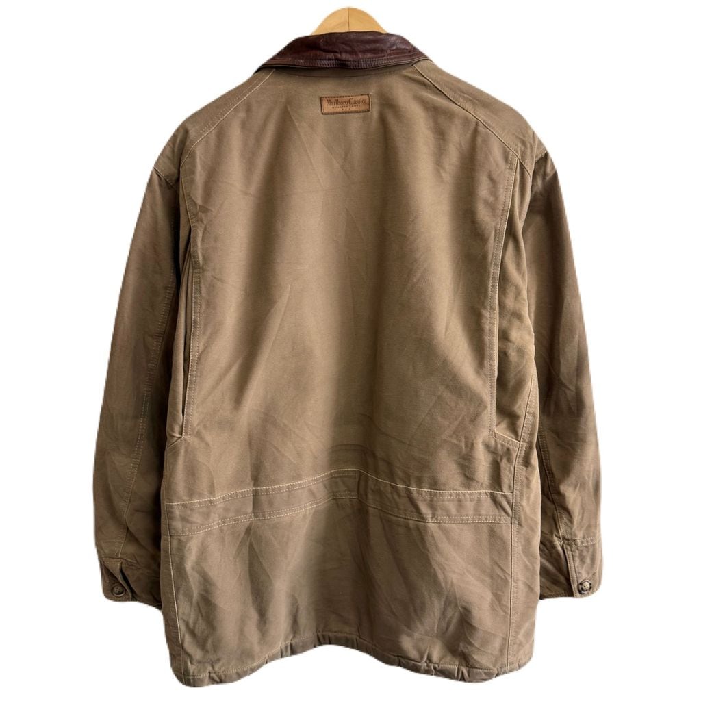 Marlboro Classics キャンバスジャケット 襟レザー フロントボタン ブラウン ベージュ Mサイズ No.M954