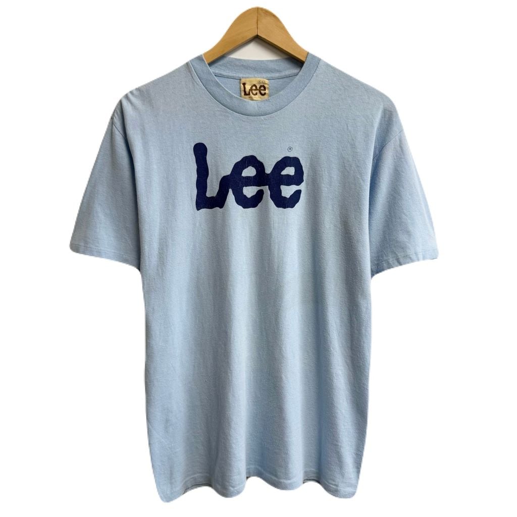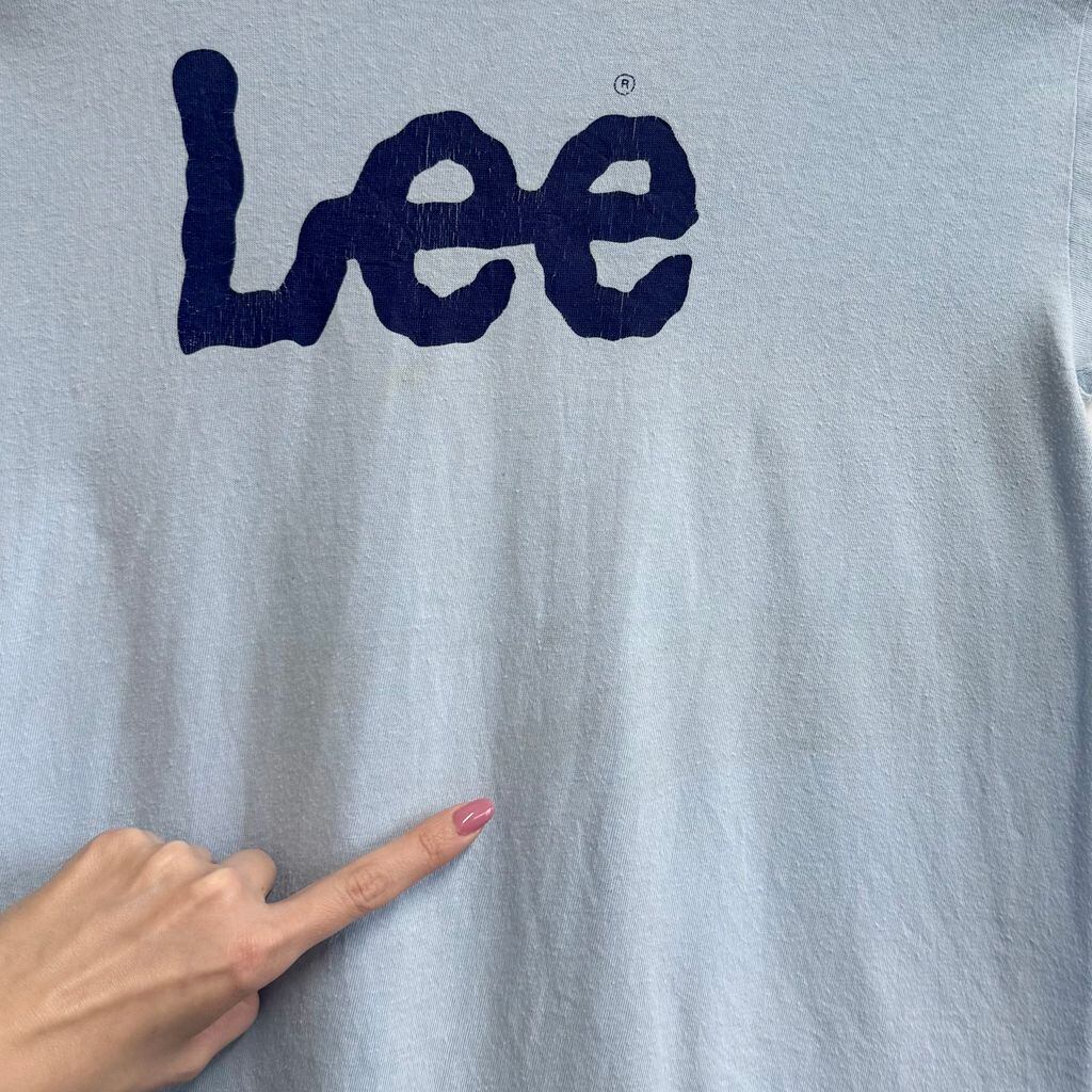 80's vintage ビンテージ USA製 Lee リー ロゴプリント シングルステッチ 半袖Tシャツ 水色 ライトブルー No.M969