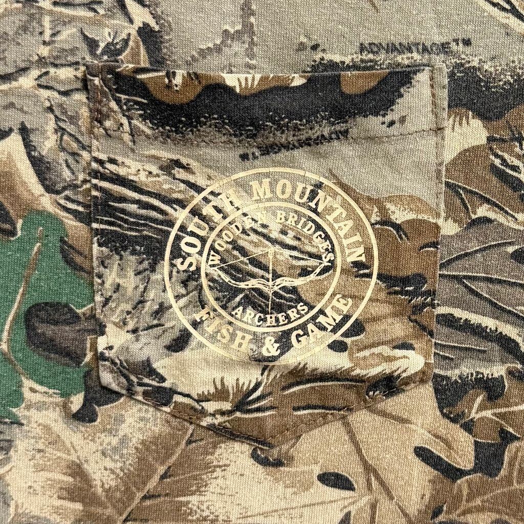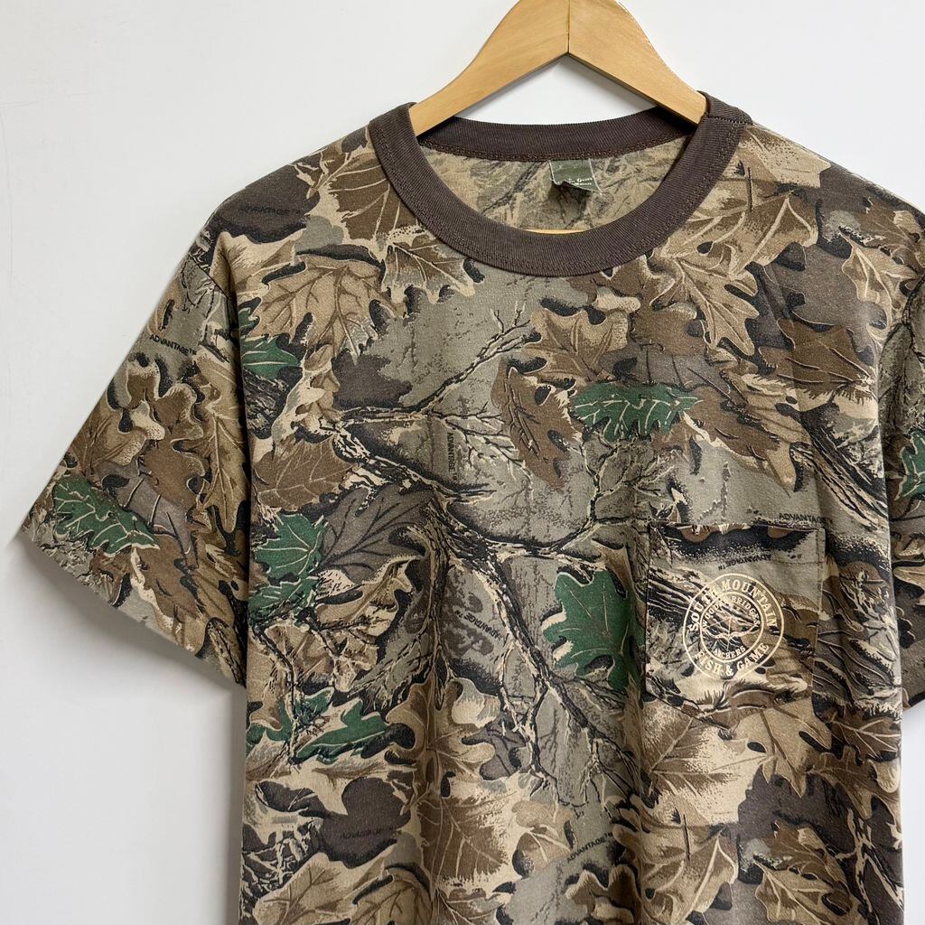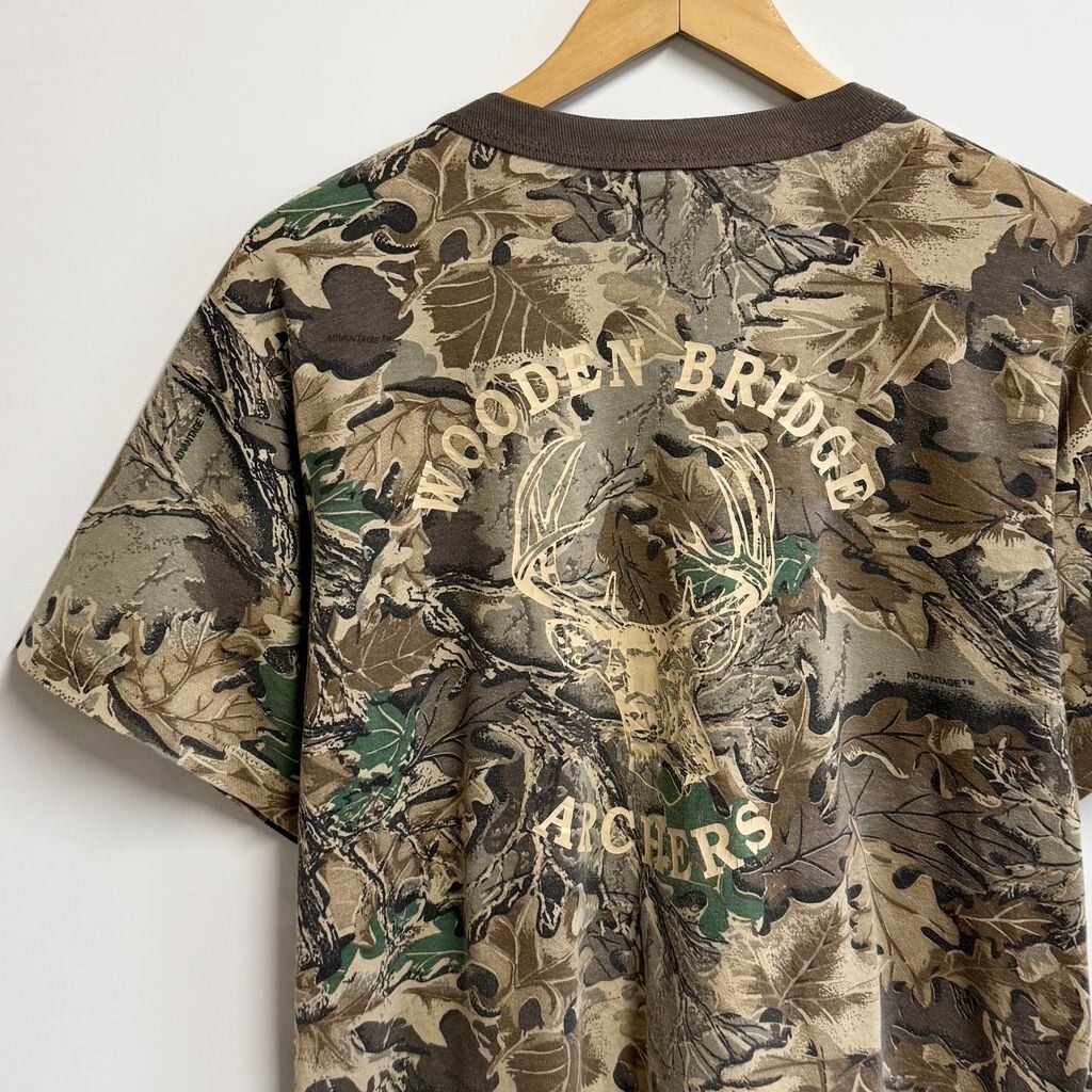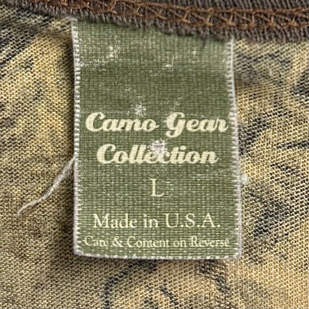 USA製 ビンテージ vintage Camo Gear Collection リアルツリーカモ 鹿 シカ アニマルプリント 胸ポケット付き シングルステッチ 半袖Tシャツ 多色 Lサイズ No.M973