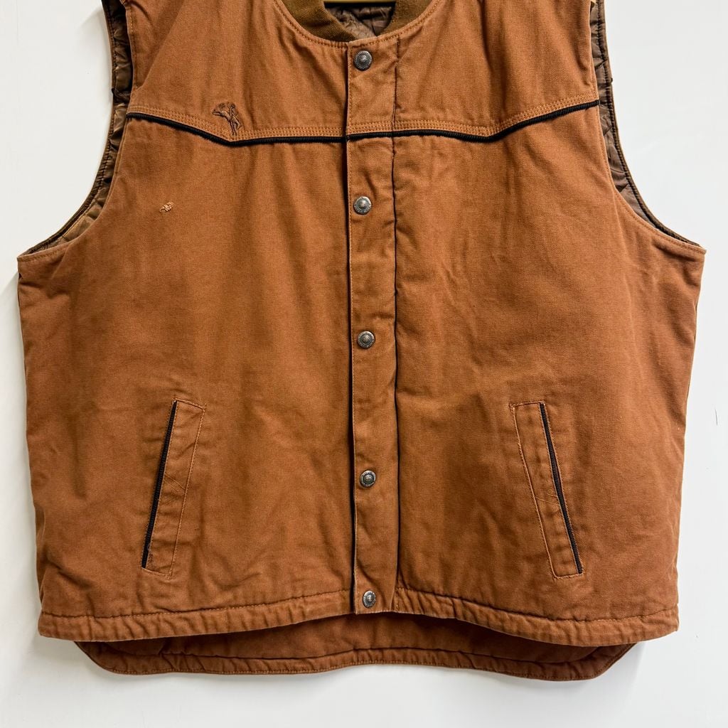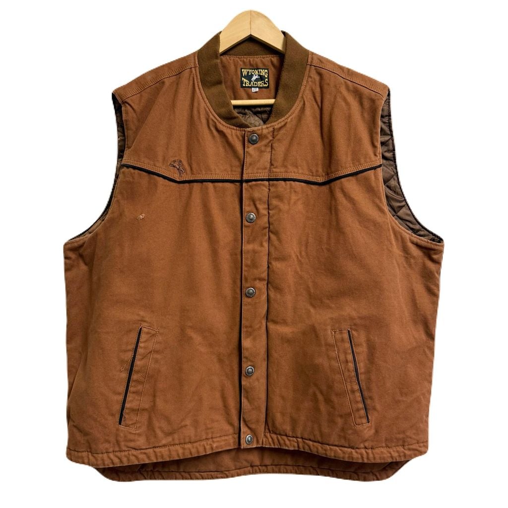 WYOMING TRADERS ダック地ベスト キルティング裏地 スナップボタン×フルジップ 茶色 ブラウン XXLサイズ No.M975