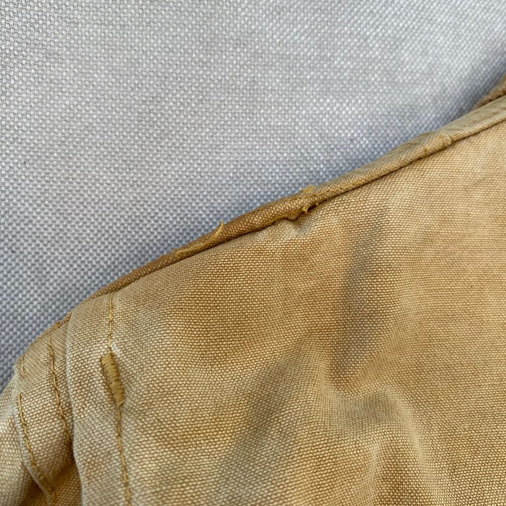 肩のステッチのほつれ