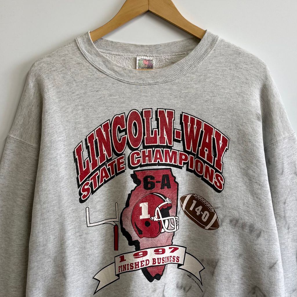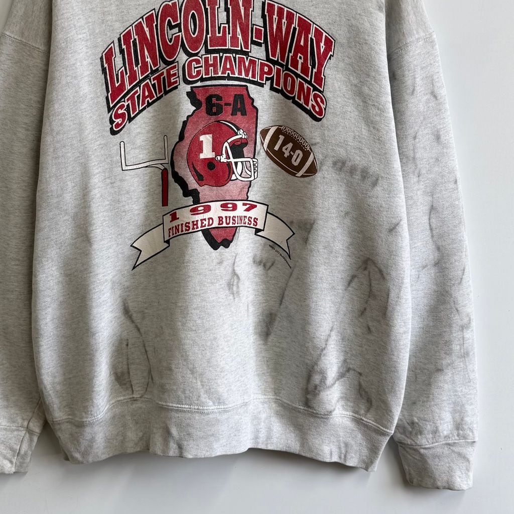FRUIT OF THE LOOM フルーツオブザルーム ボロ アメフト LINCOLN-WAY トレーナー スウェット ライトグレー XLサイズ No.M980