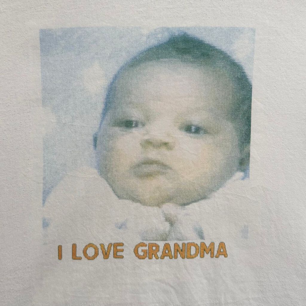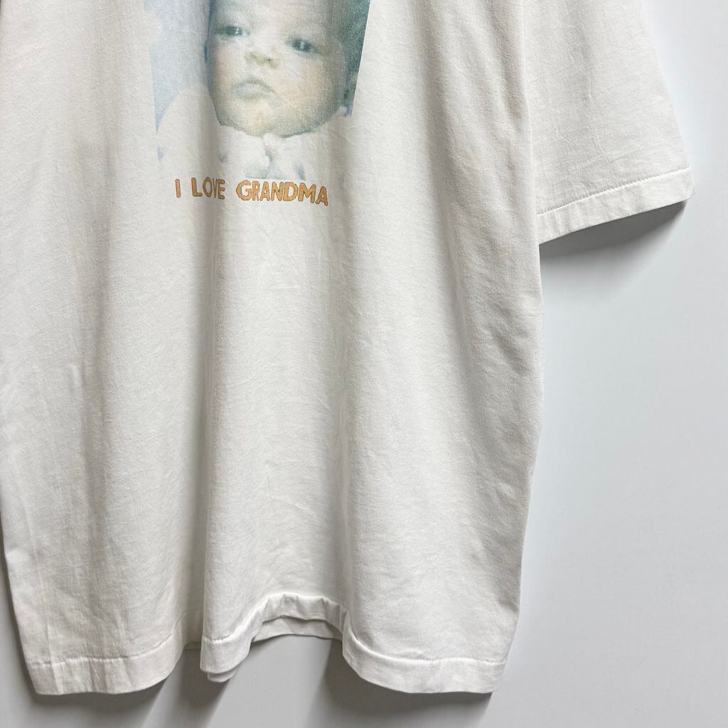 〜90's vintage ビンテージ フォトプリント 赤ちゃん I LOVE GRANDMA シングルステッチ 半袖Tシャツ 白 No.M987