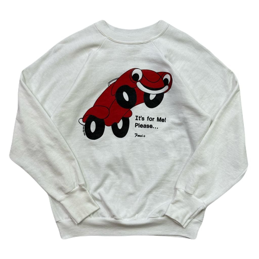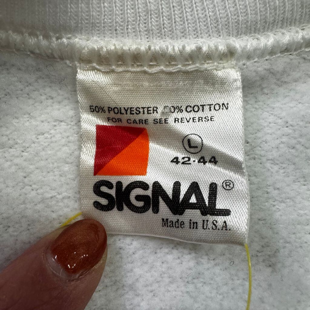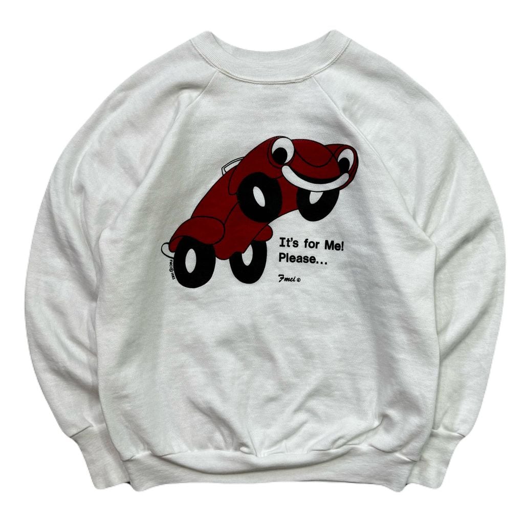 USA製 80s SIGNAL FMIC It's for Me. Please. シグナル 車 両面プリント ラグランスウェット トレーナー 白 Lサイズ No.EA296