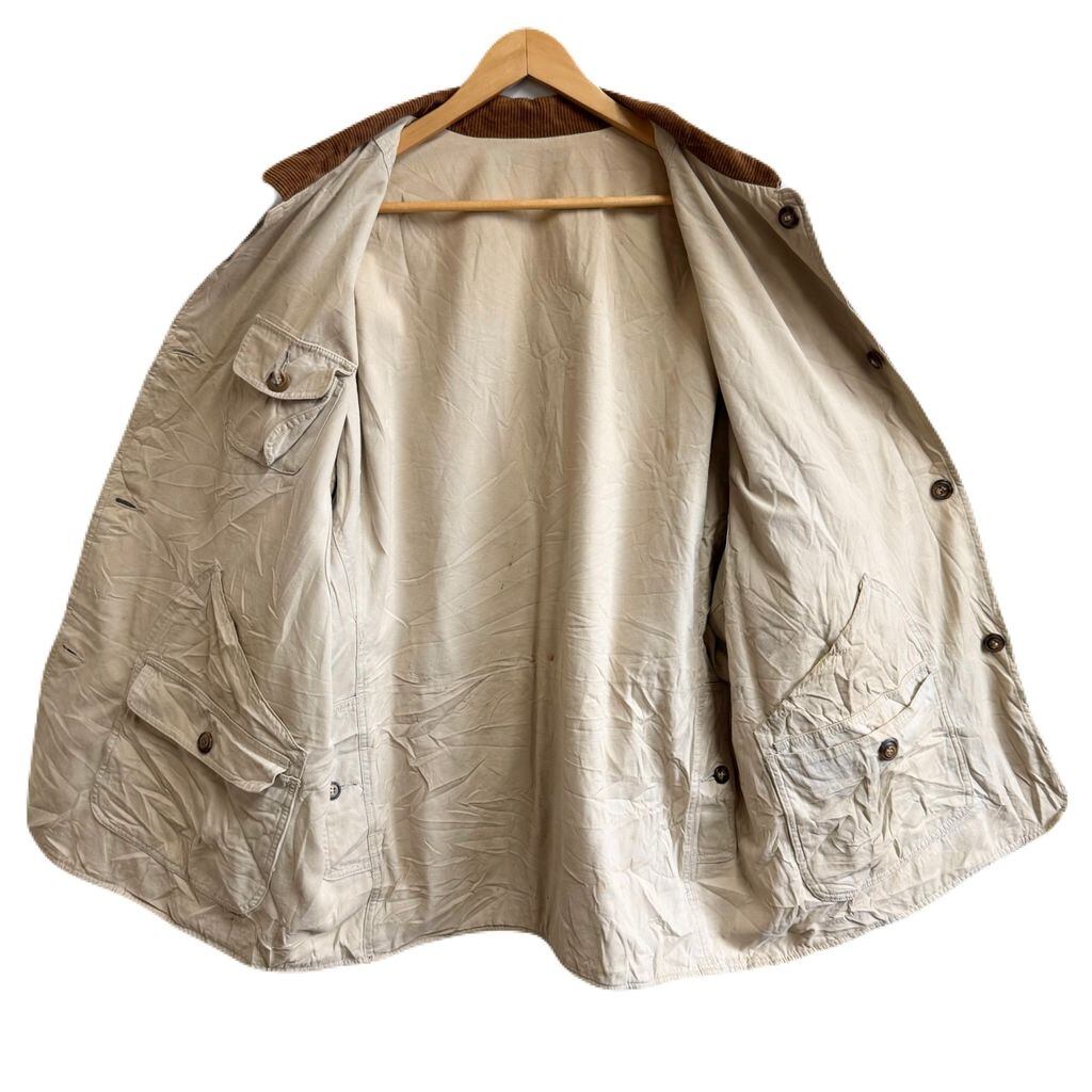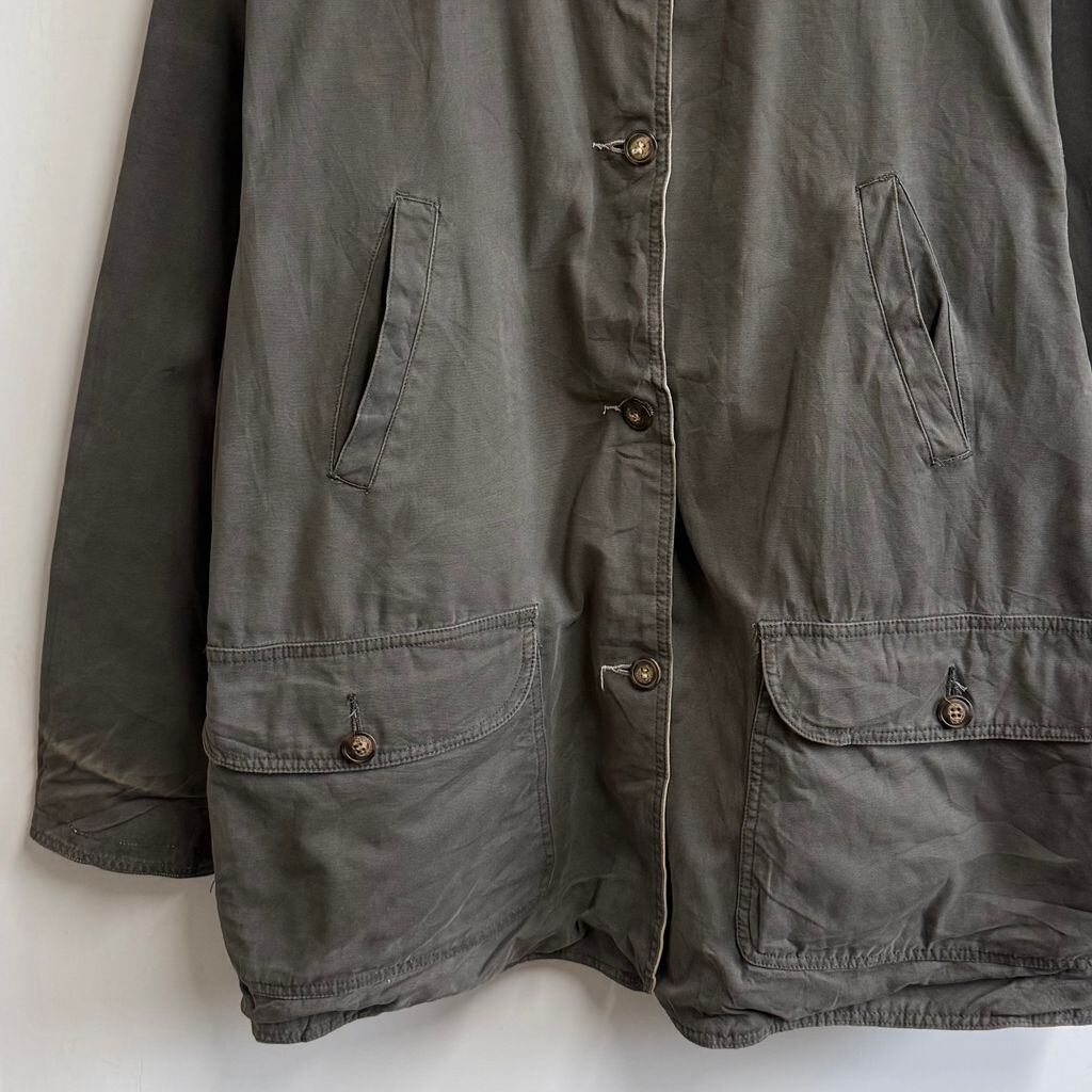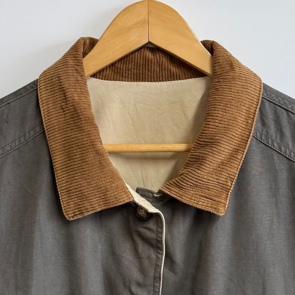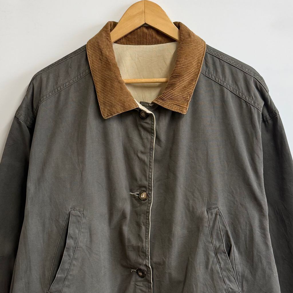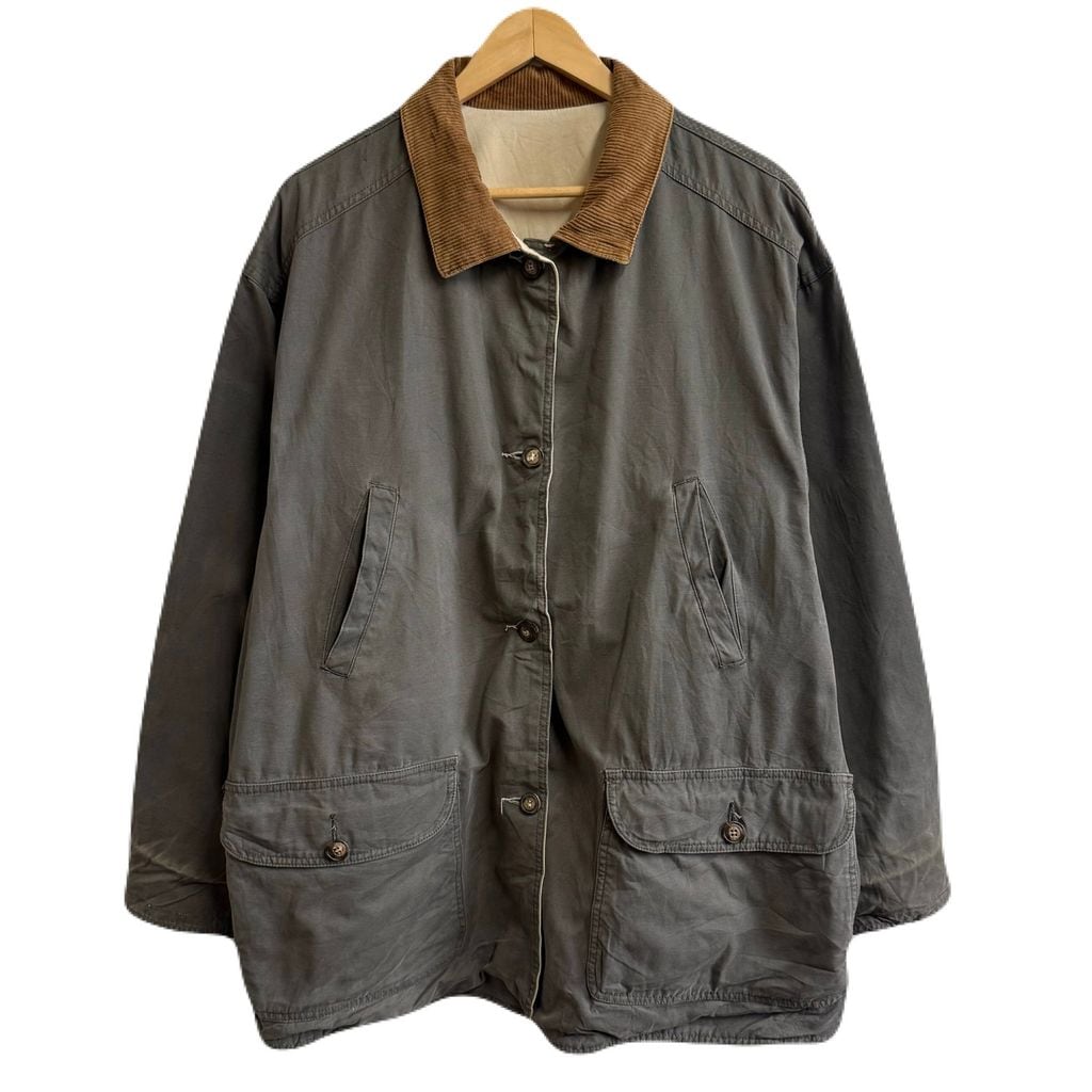 〜90's リバーシブルハンティングジャケット 襟コーデュロイ フロントボタン チャコールグレー×オフホワイト No.M906