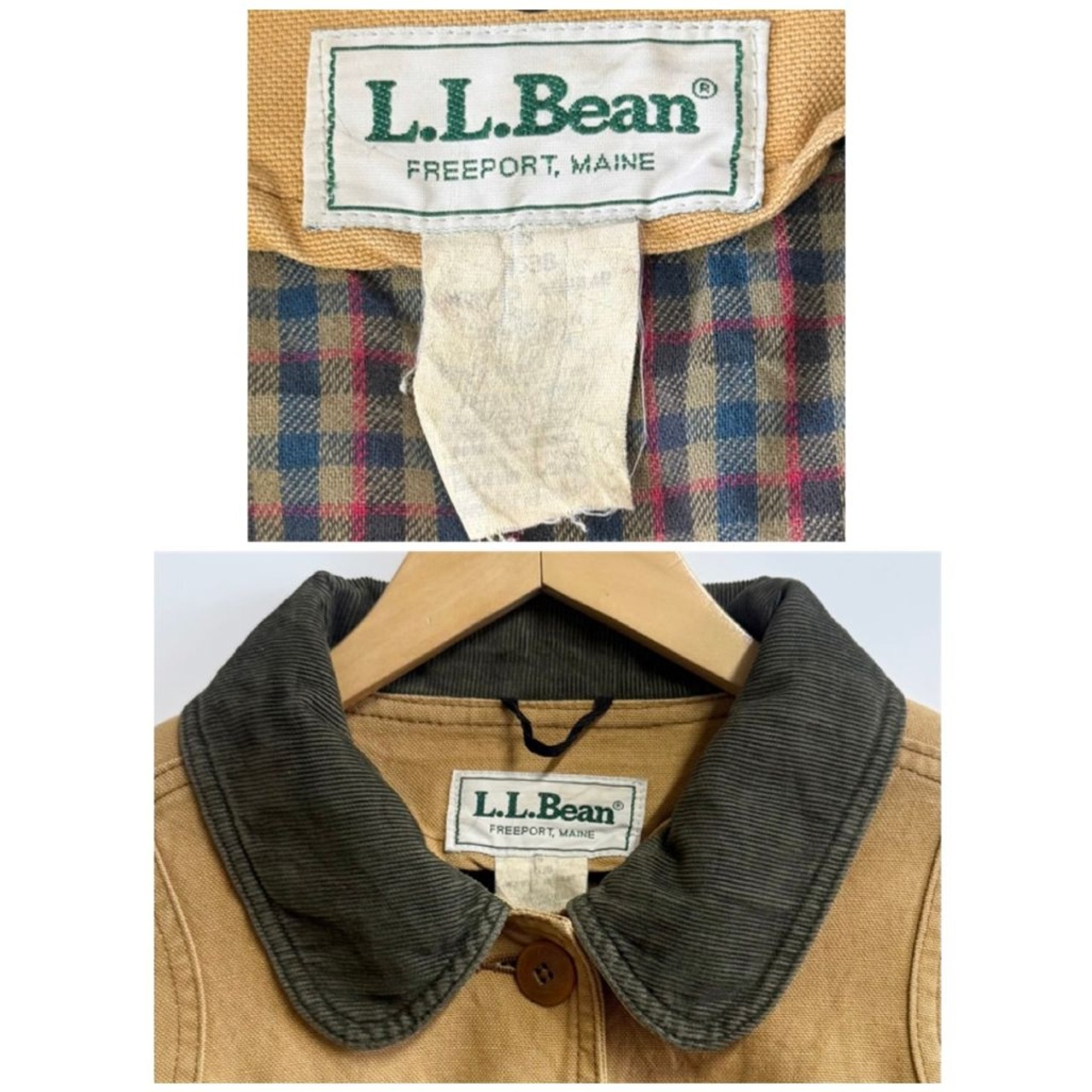 L.L.Bean エルエルビーン フィールドコート ハンティングジャケット ライナー付き 襟コーデュロイ フロントボタン ベージュブラウン Sサイズ No.M907