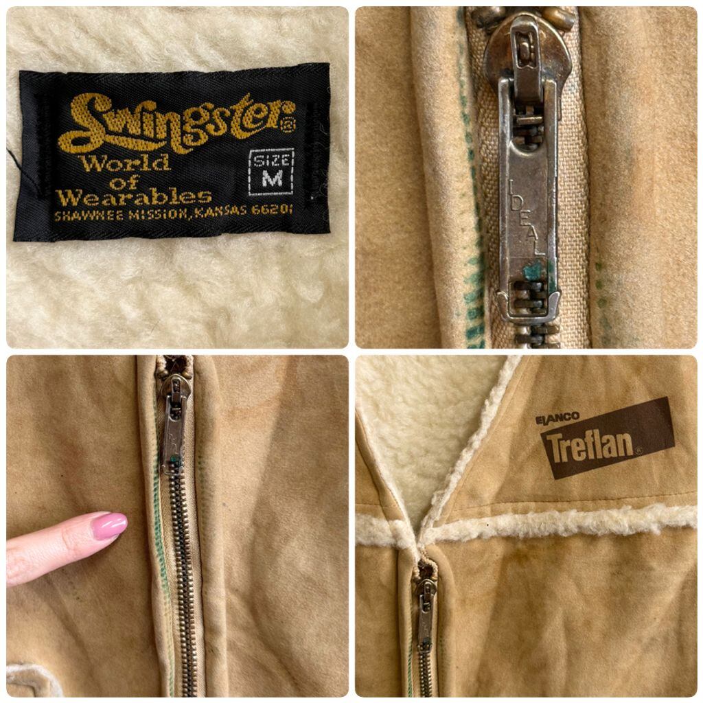 70's vintage ビンテージ Swingster IDEAL アイディールジップ ムートンベスト ボアベスト ベージュ Mサイズ No.M925
