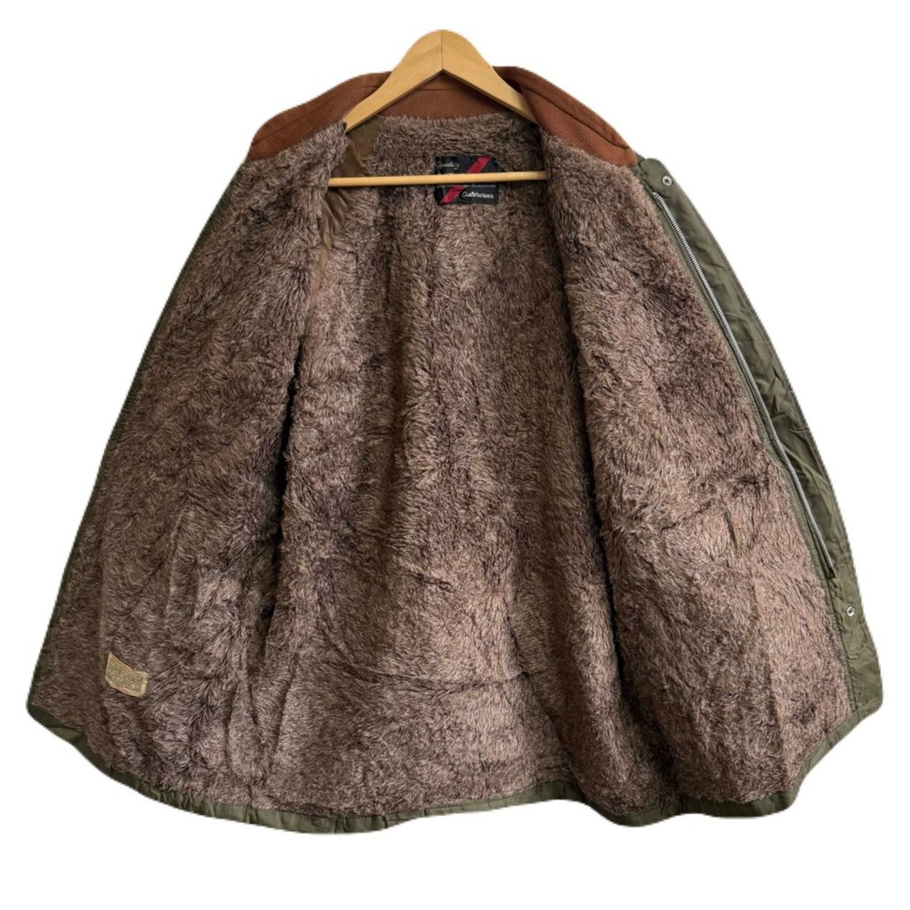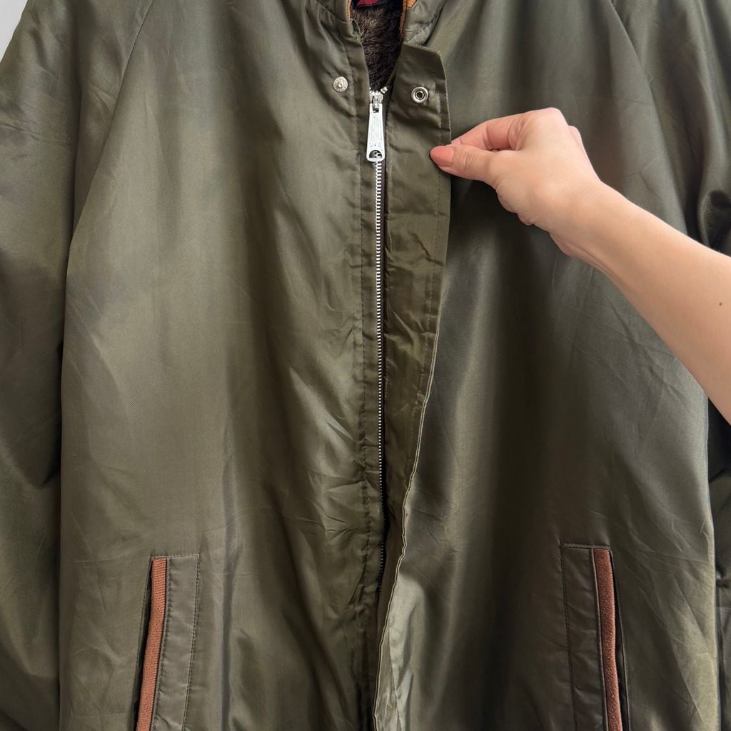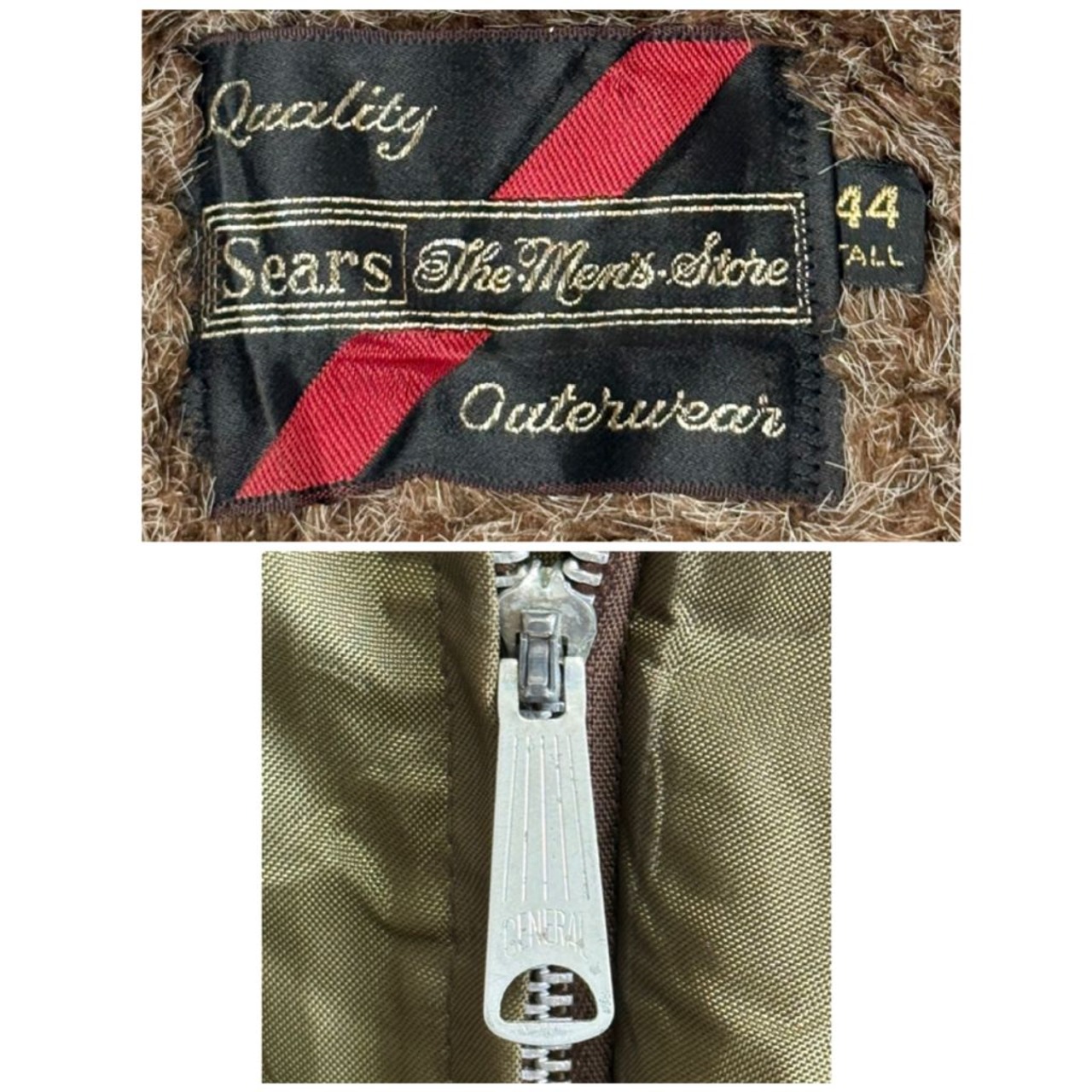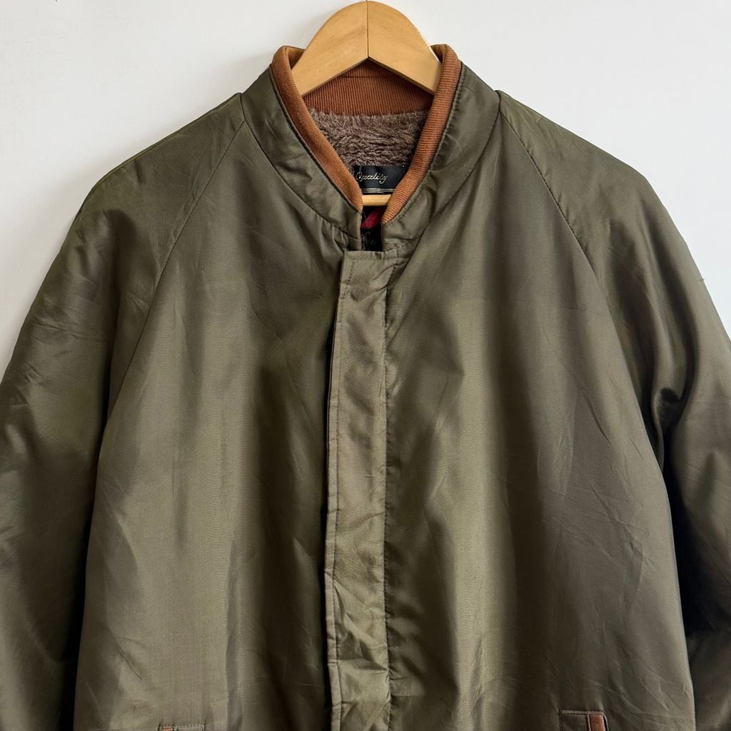 Sears シアーズ 裏ボアナイロンジャケット 切り替えデザイン カーキ×ブラウン 44TALLサイズ No.M930