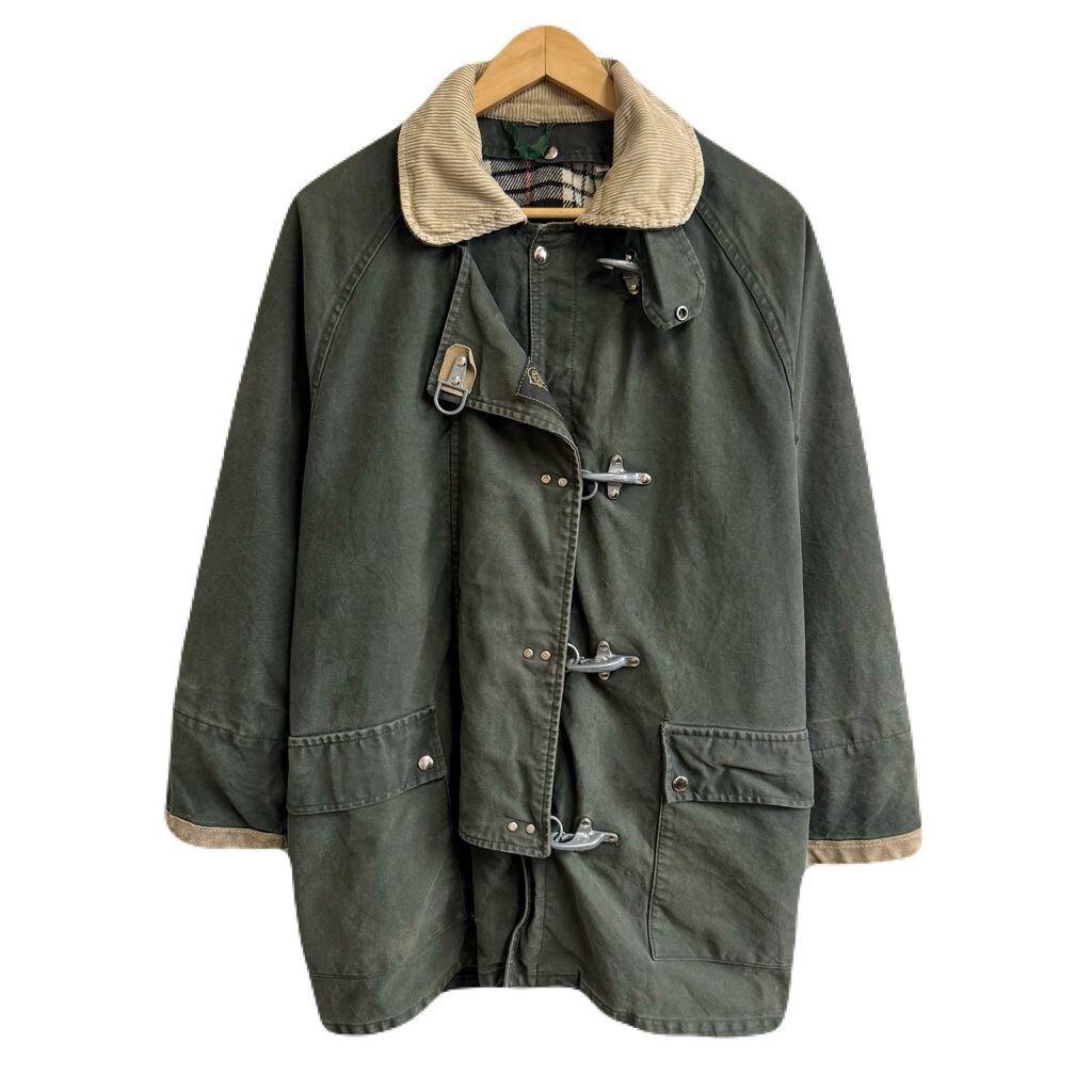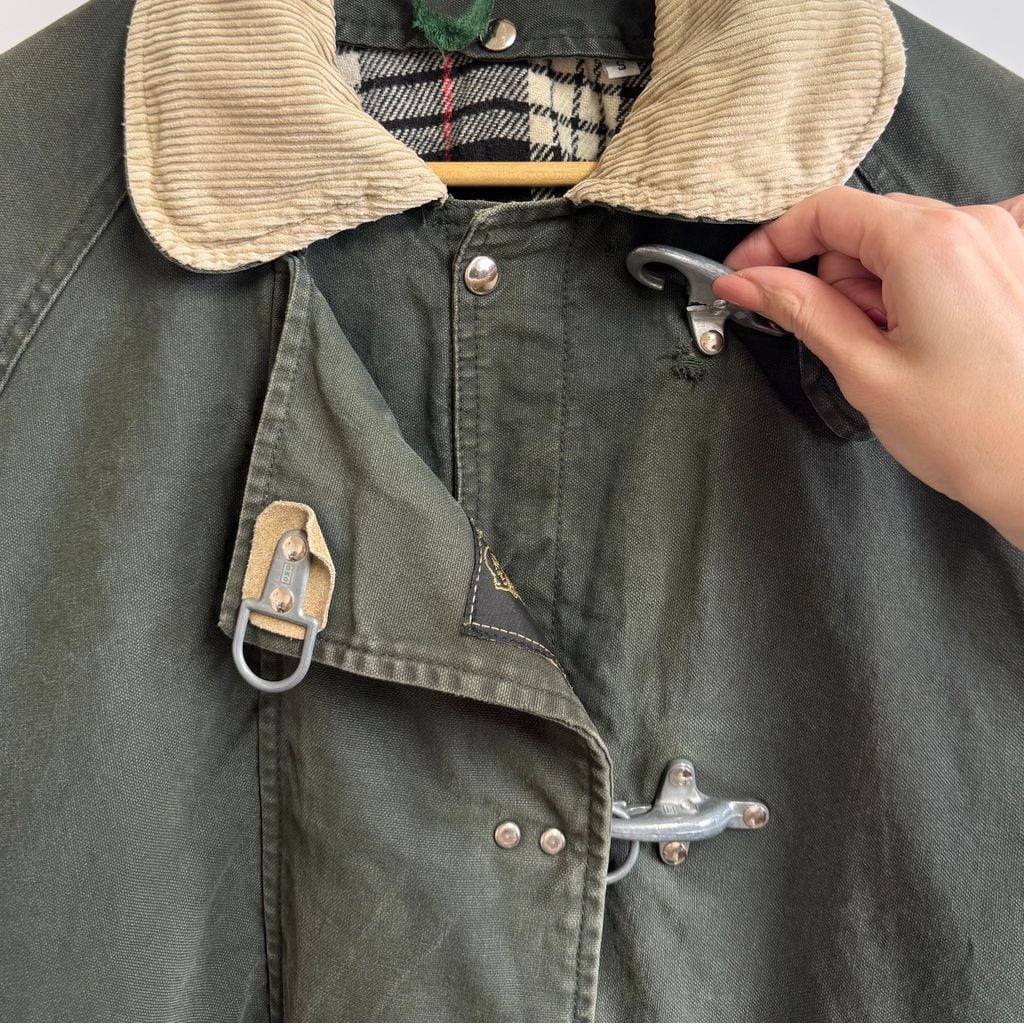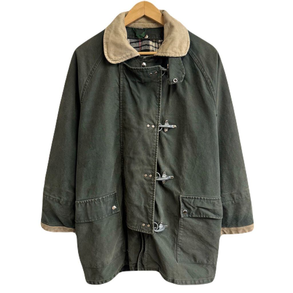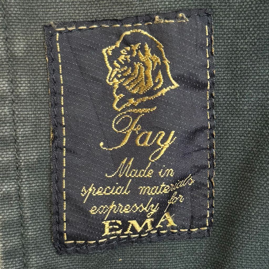 Fay ファイヤーマンジャケット ライナー付き 裏地チェック柄 襟コーデュロイ スナップボタン×金具 グリーン×ベージュ Sサイズ No.M932