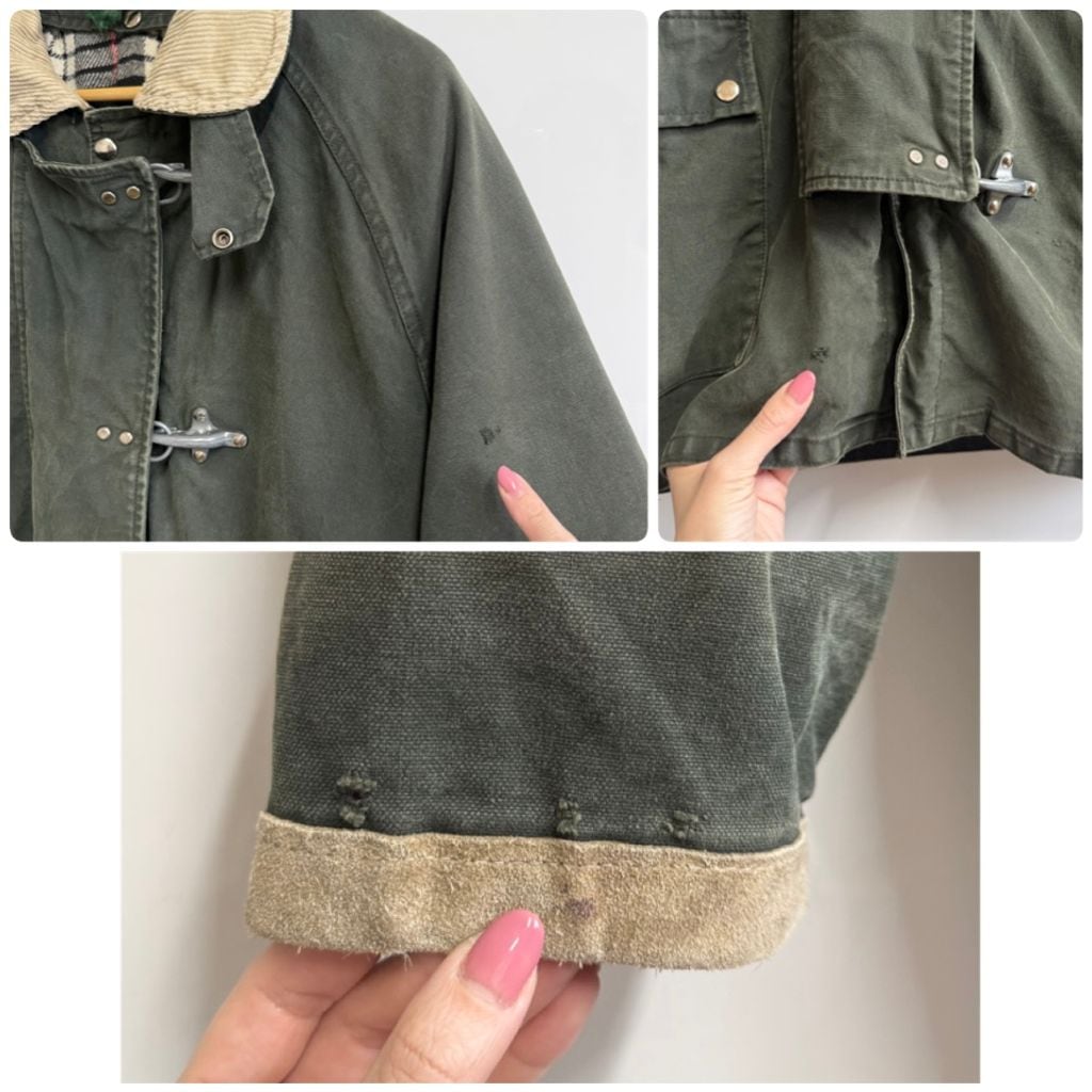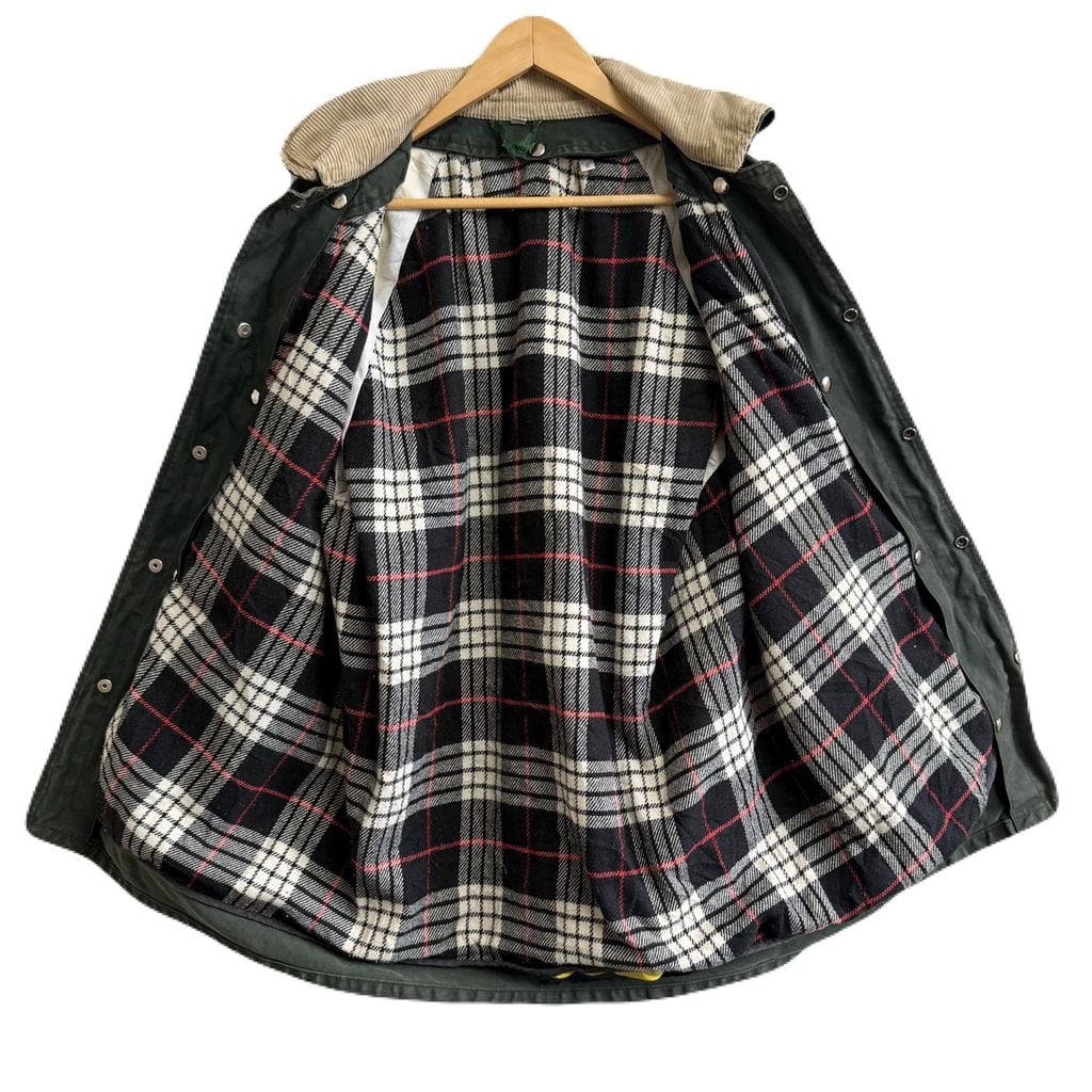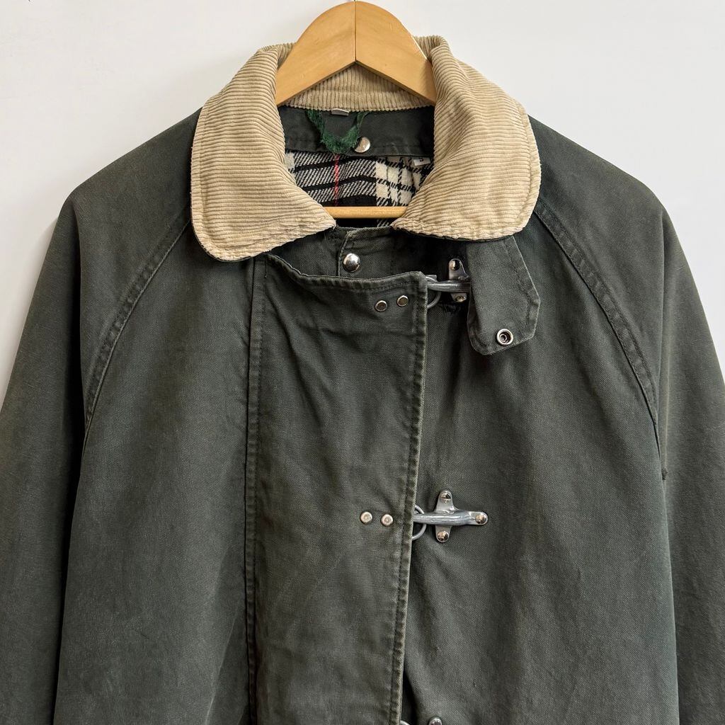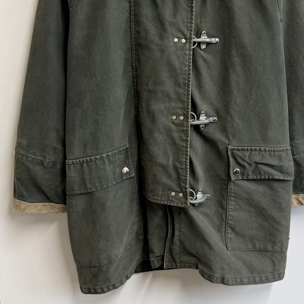 Fay ファイヤーマンジャケット ライナー付き 裏地チェック柄 襟コーデュロイ スナップボタン×金具 グリーン×ベージュ Sサイズ No.M932