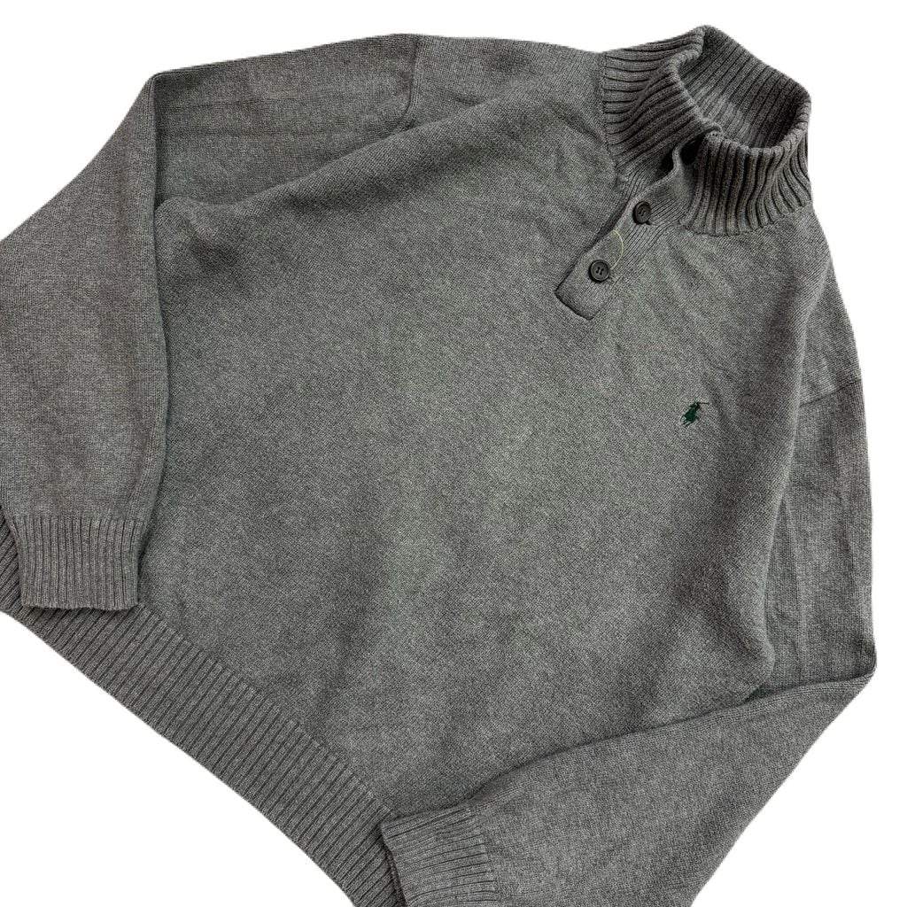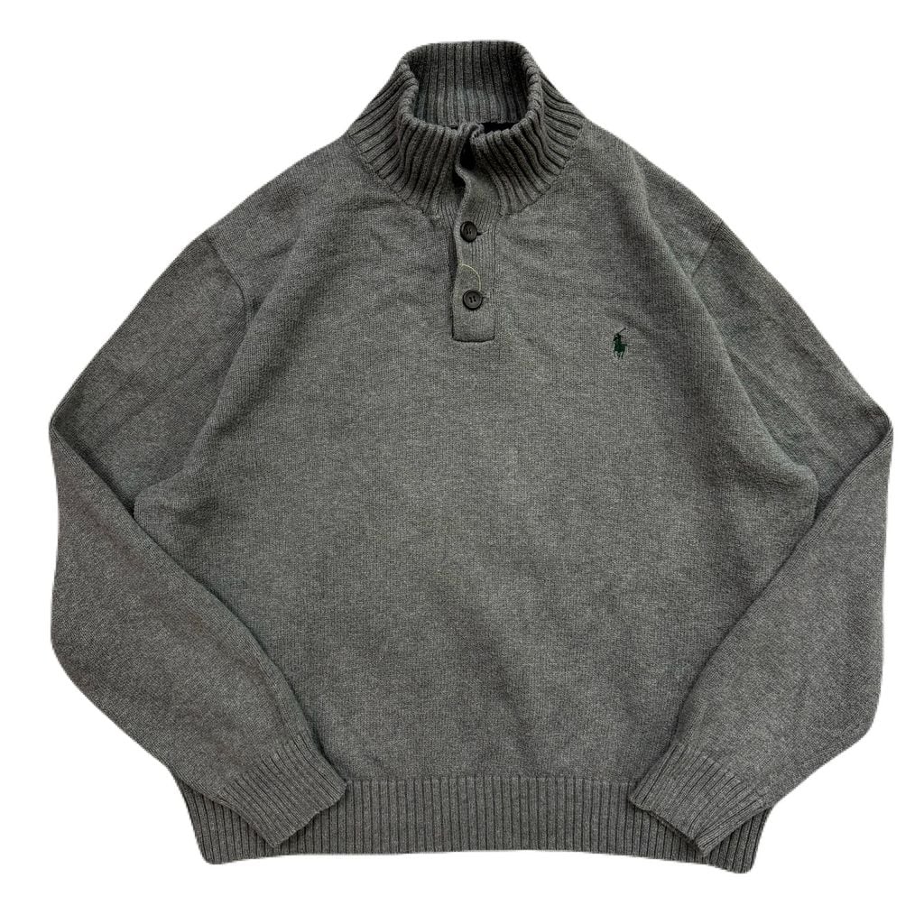 POLO RALPH LAUREN ポロ ラルフローレン ヘンリーネック ハイネック ハーフボタン コットンニット グレー XXLサイズ No.EA315