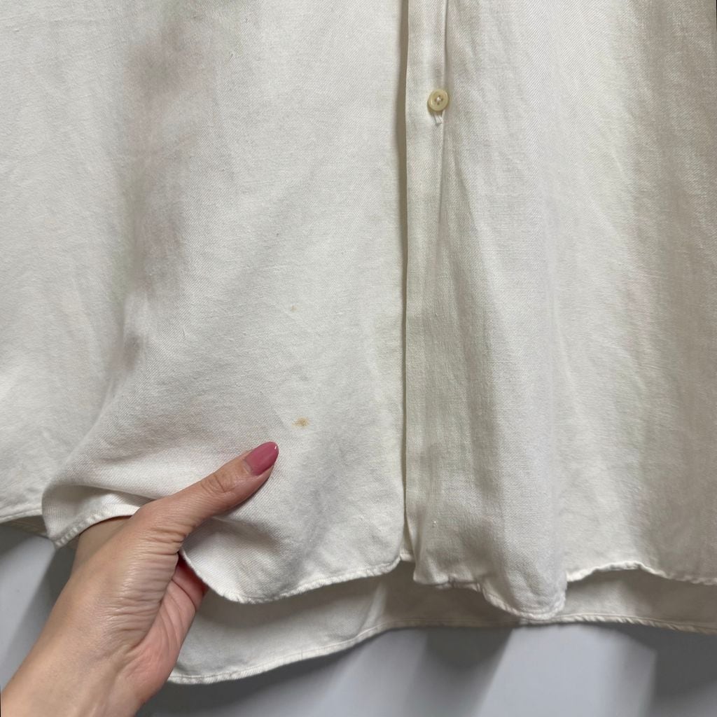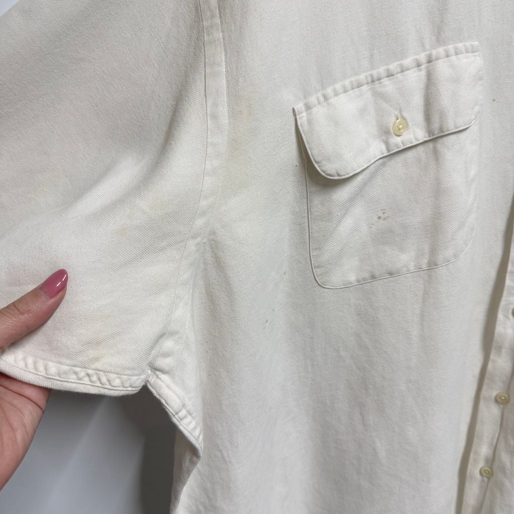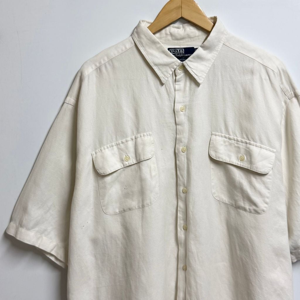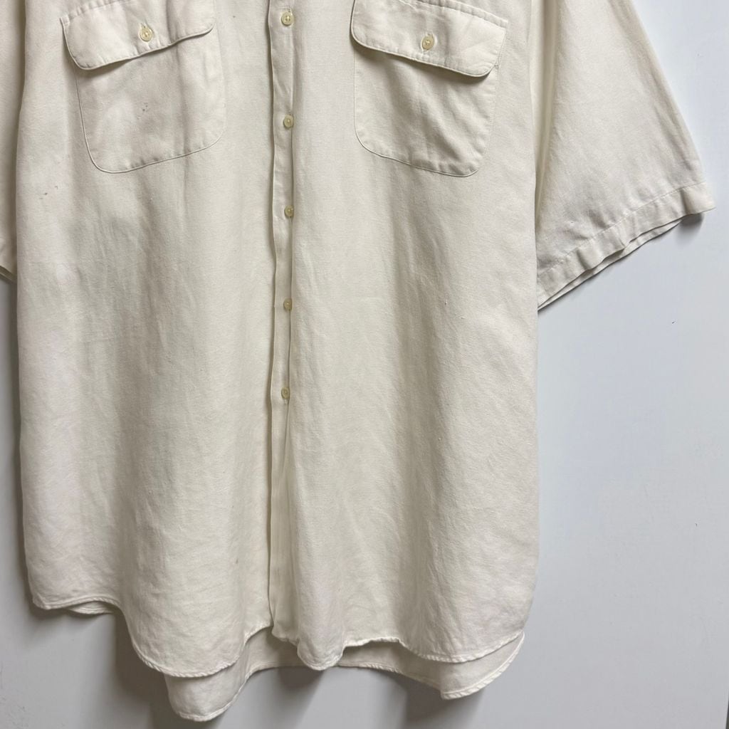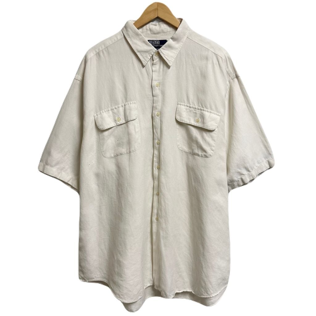 Polo Ralph Lauren ポロ ラルフローレン BENFORD リネン×コットンシャツ 無地 ポケット付き 半袖シャツ 白 XXLサイズ No.M942