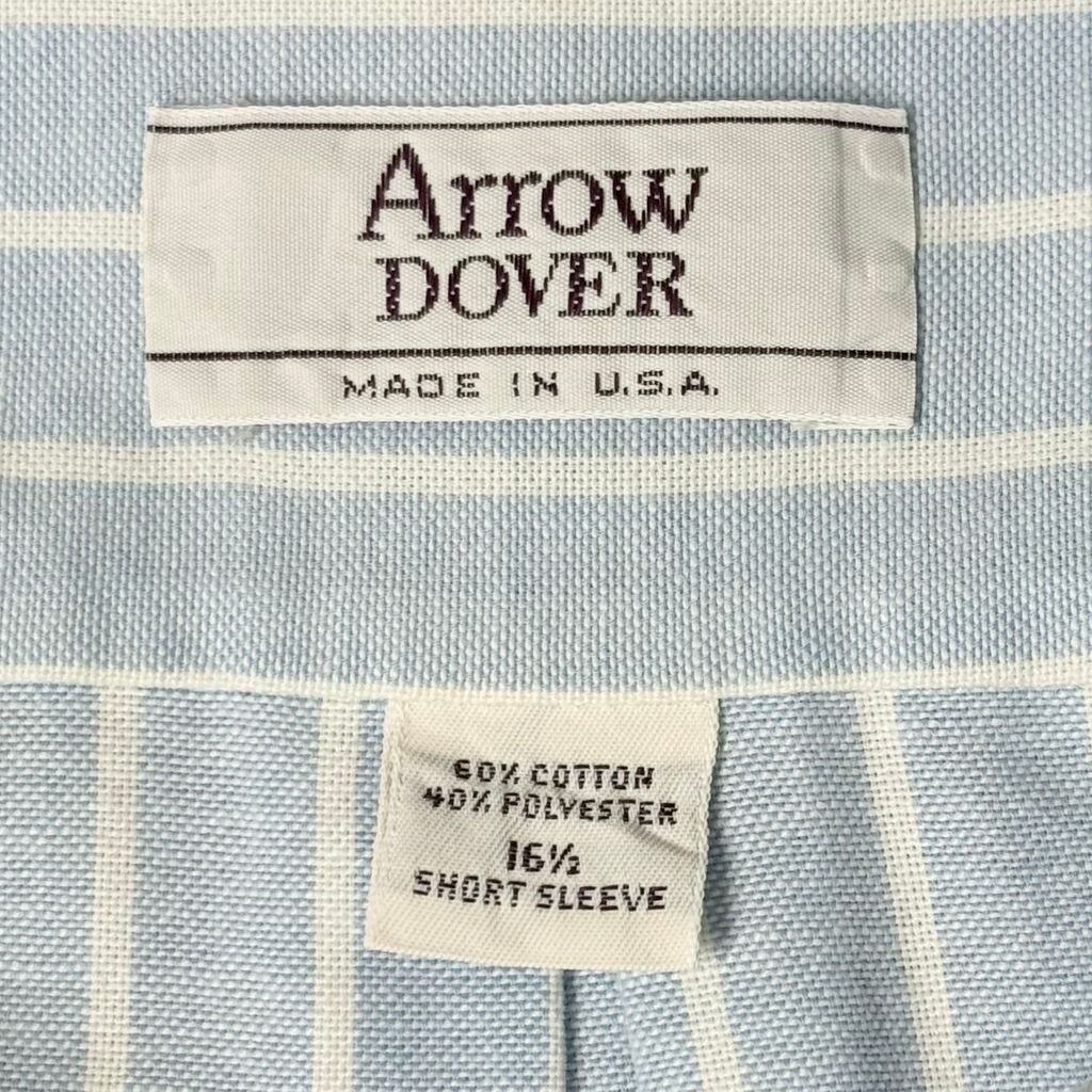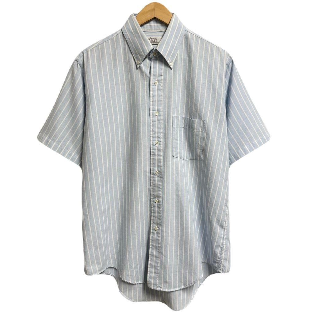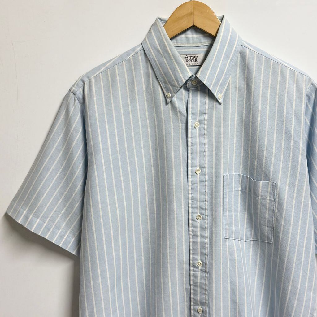 USA製 Arrow DOVER 混紡シャツ ボタンダウンシャツ ストライプ ポケット付き 半袖シャツ 水色×白 No.M943