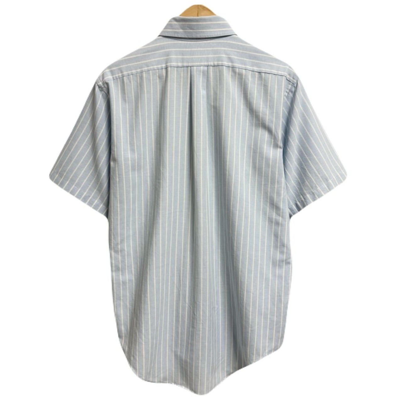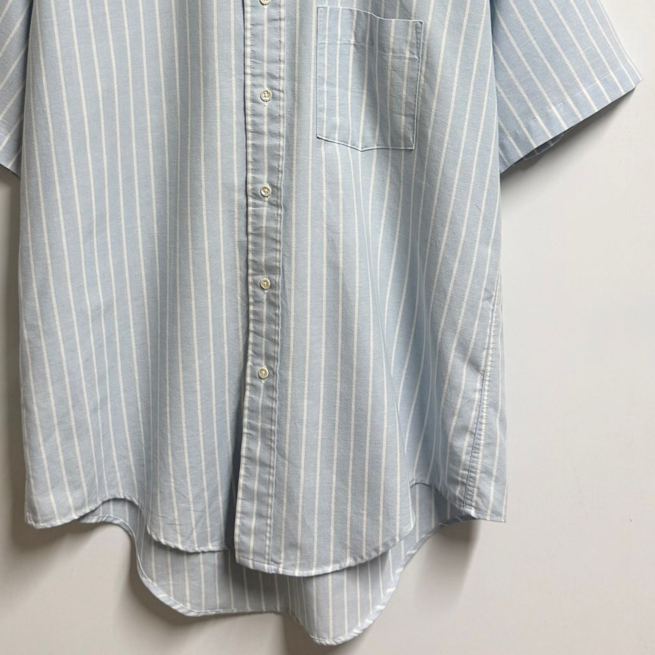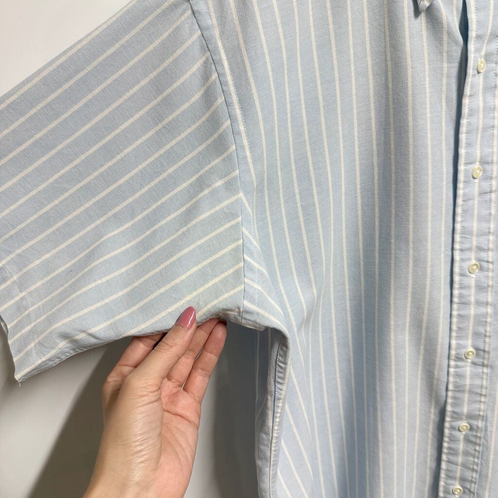 USA製 Arrow DOVER 混紡シャツ ボタンダウンシャツ ストライプ ポケット付き 半袖シャツ 水色×白 No.M943