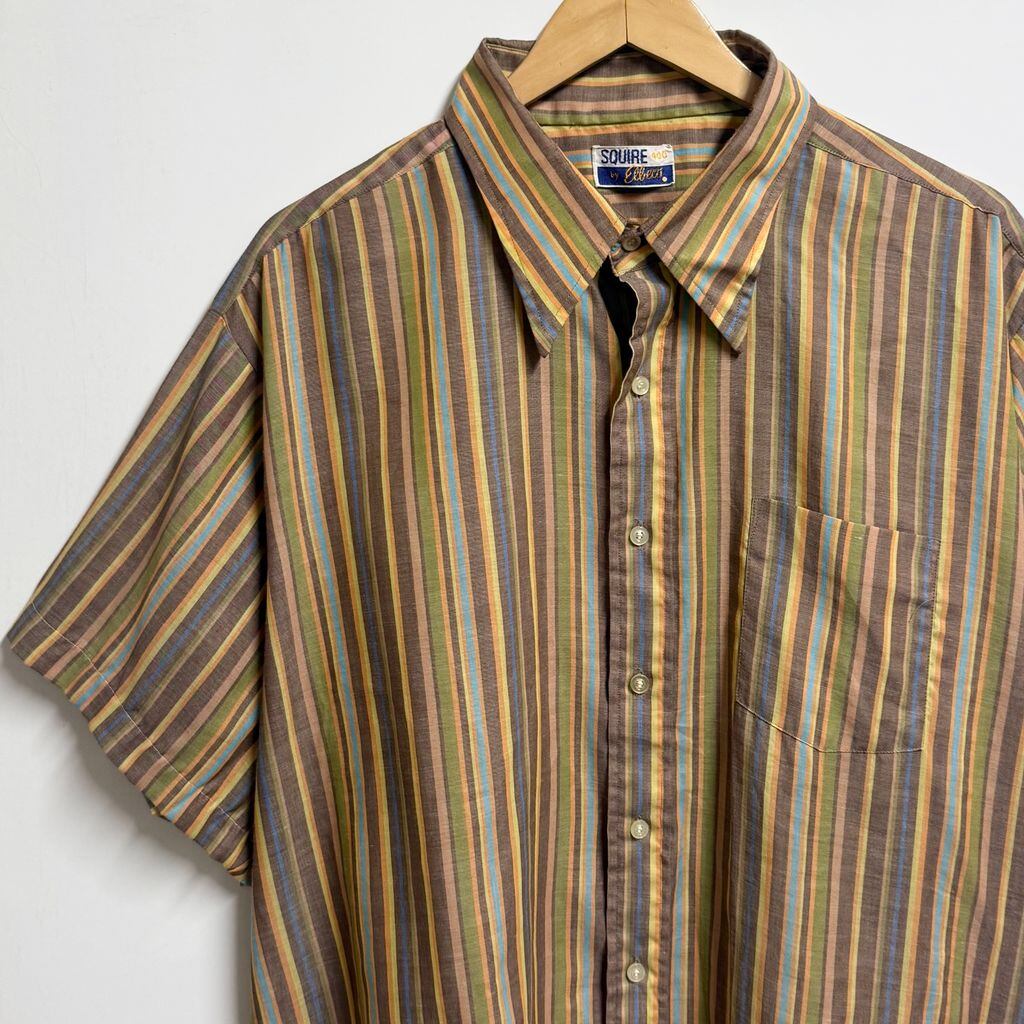 SQUIRE by Elbeco ストライプ ポケット付き 半袖シャツ ブラウン×多色 カラフル No.M944