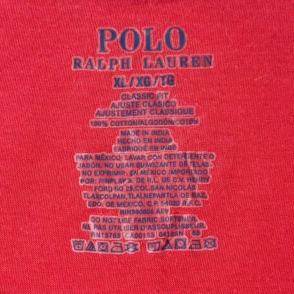 POLO RALPH LAUREN ポロ ラルフローレン ワンポイントロゴ 刺繍 半袖Tシャツ 赤 レッド XLサイズ No.M945