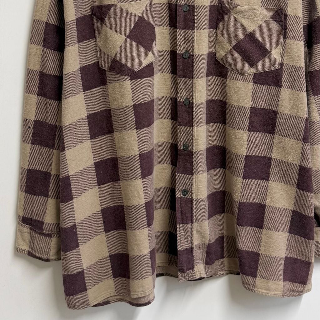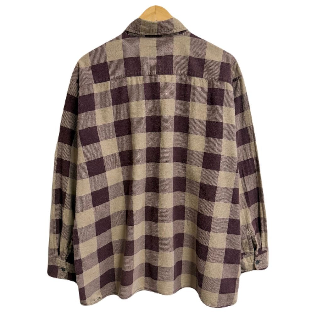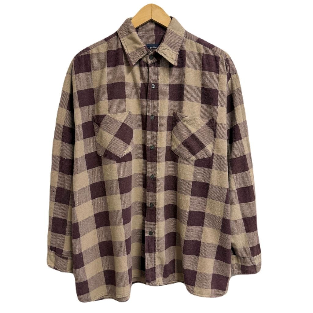 SAUGATUCK プリネル ネルシャツ コットンシャツ チェック柄 ポケット付き 長袖シャツ バーガンディ×ベージュ XLサイズ No.P060