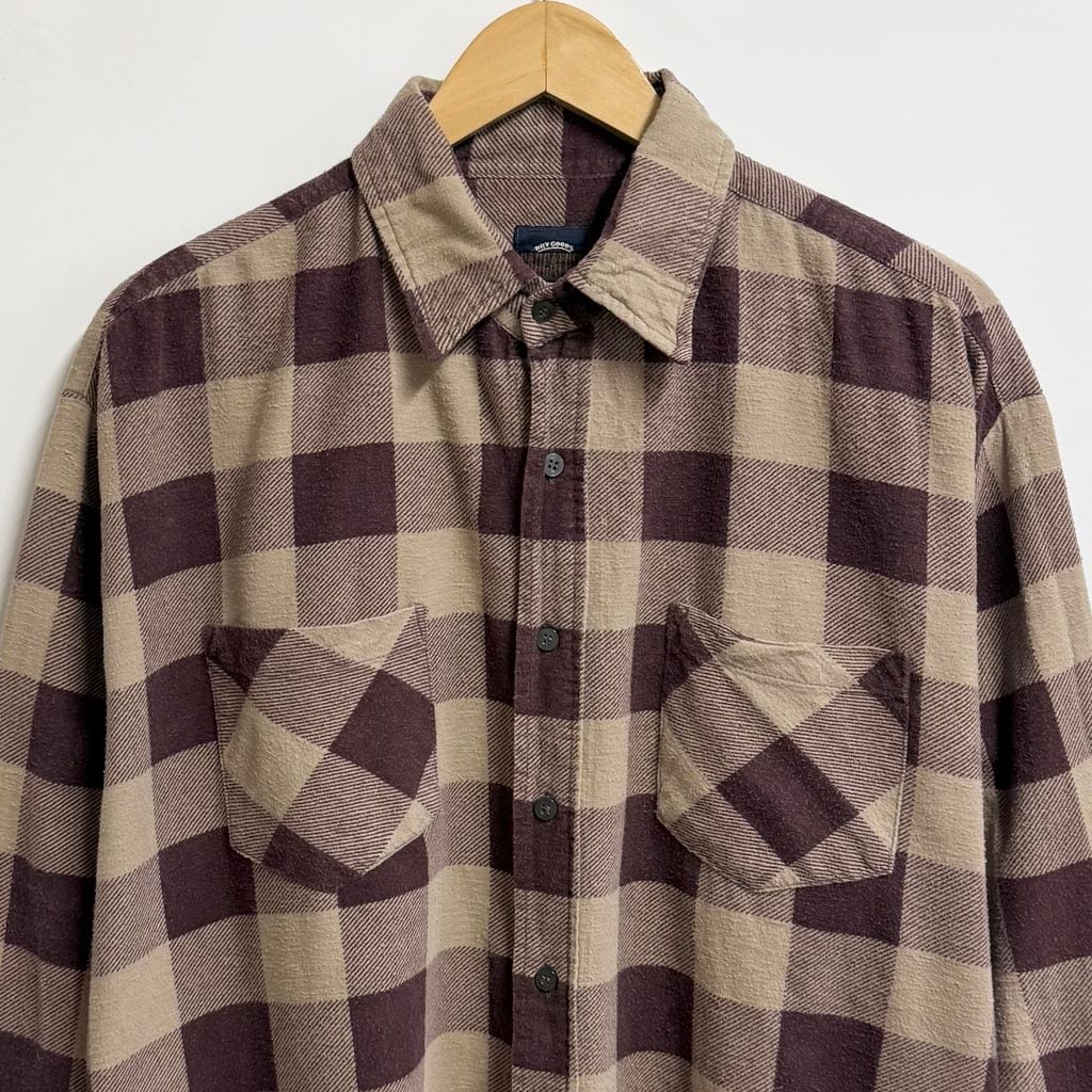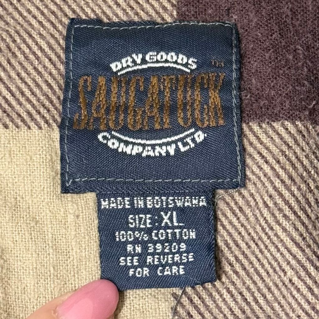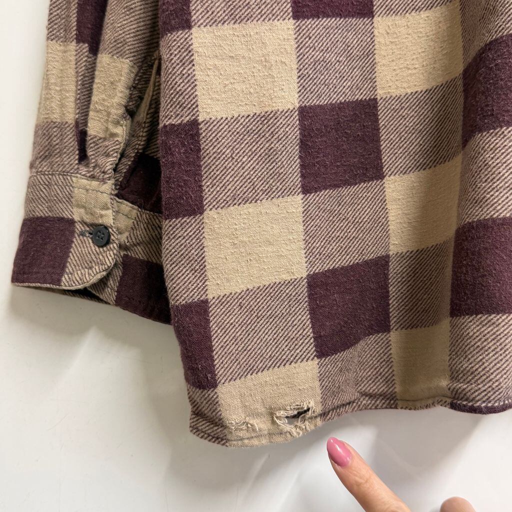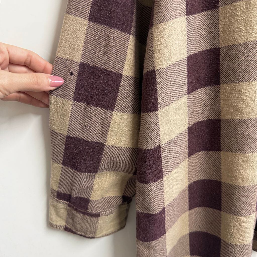 SAUGATUCK プリネル ネルシャツ コットンシャツ チェック柄 ポケット付き 長袖シャツ バーガンディ×ベージュ XLサイズ No.P060