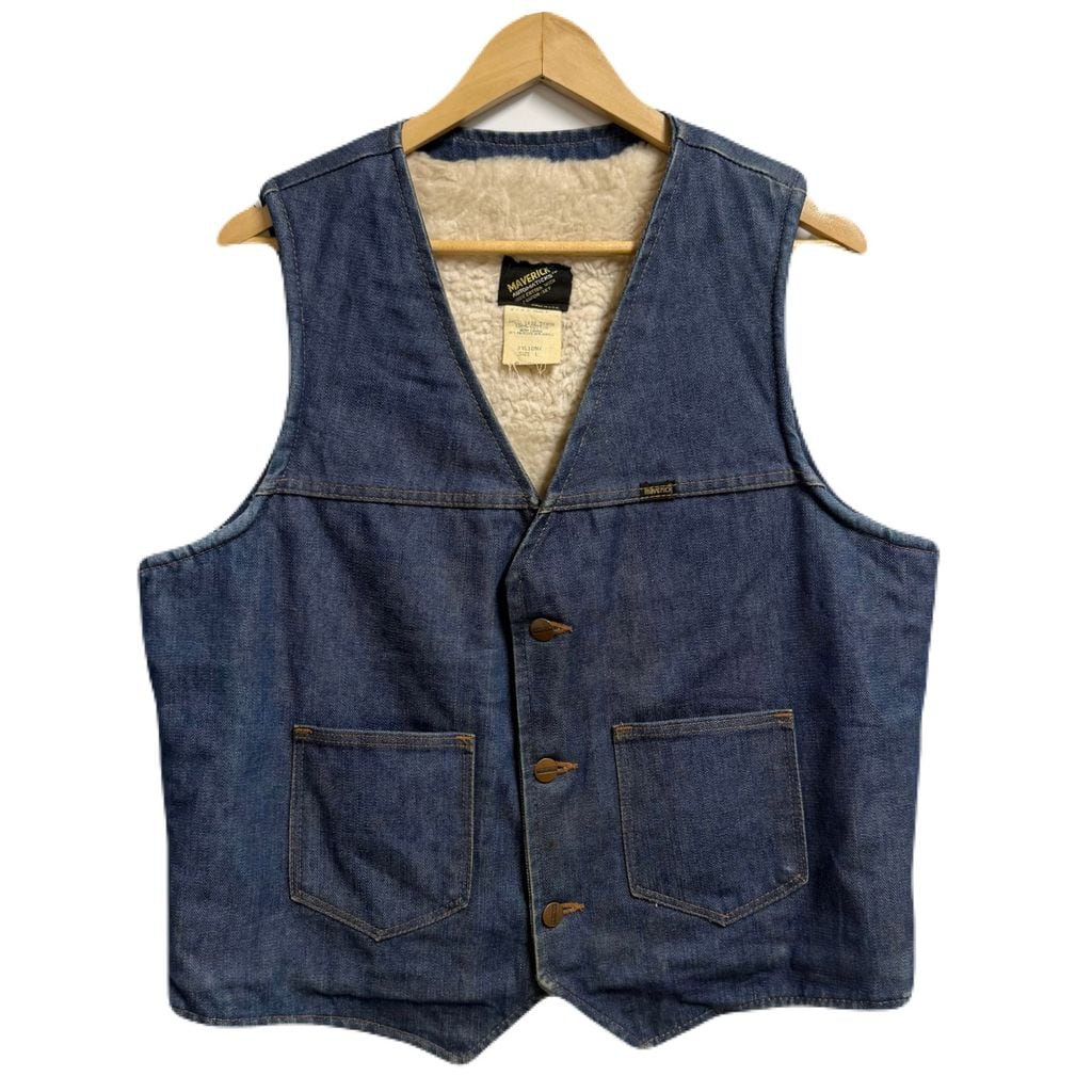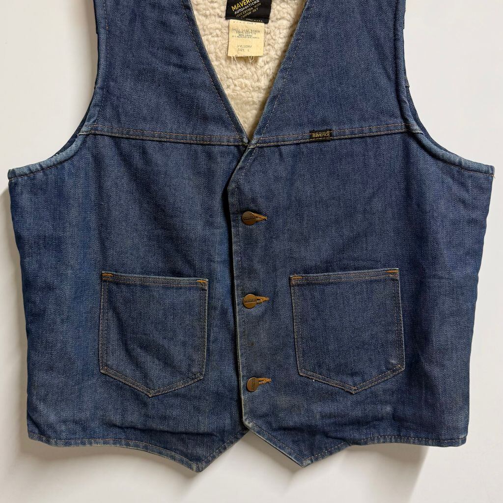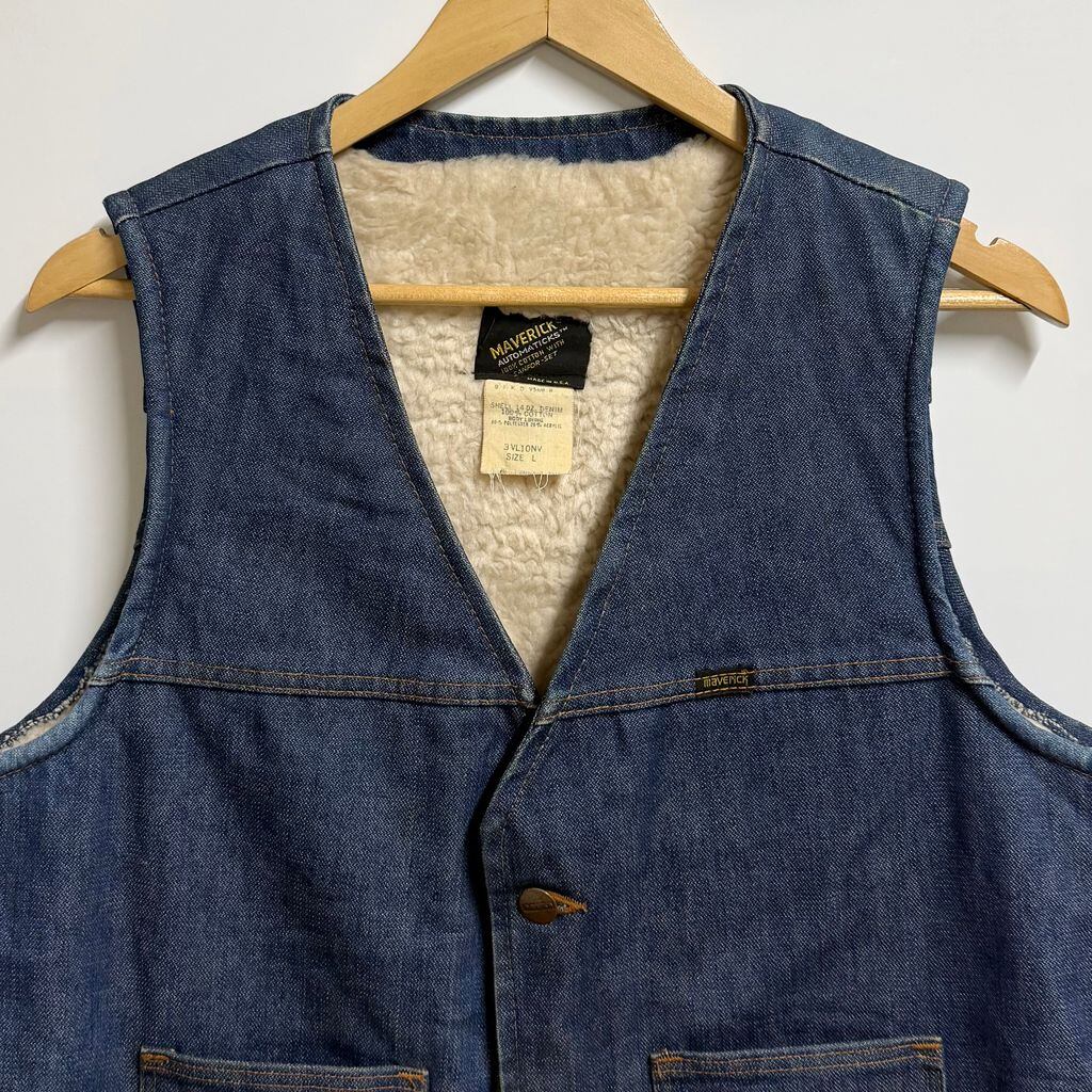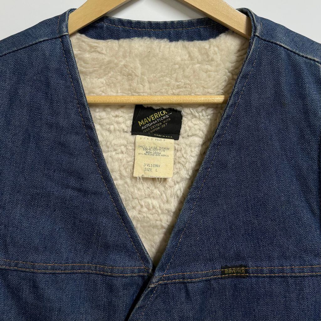 USA製 デニムボアベスト 裏ボア フロントボタン ブルー Lサイズ No.P068