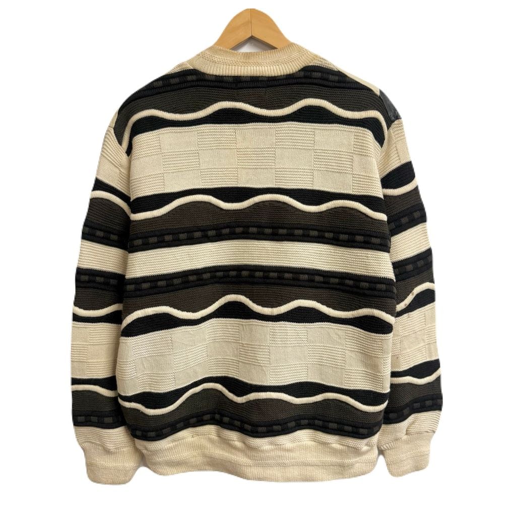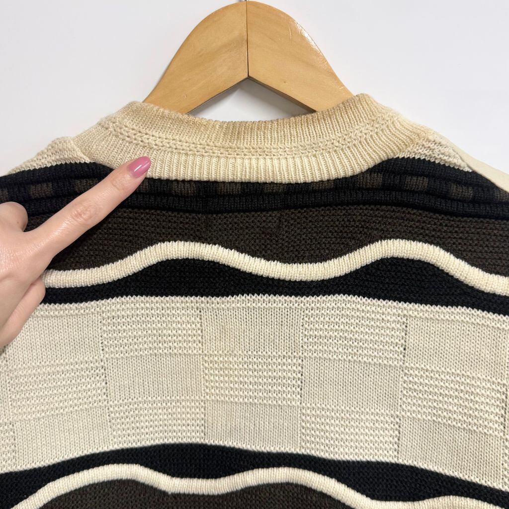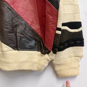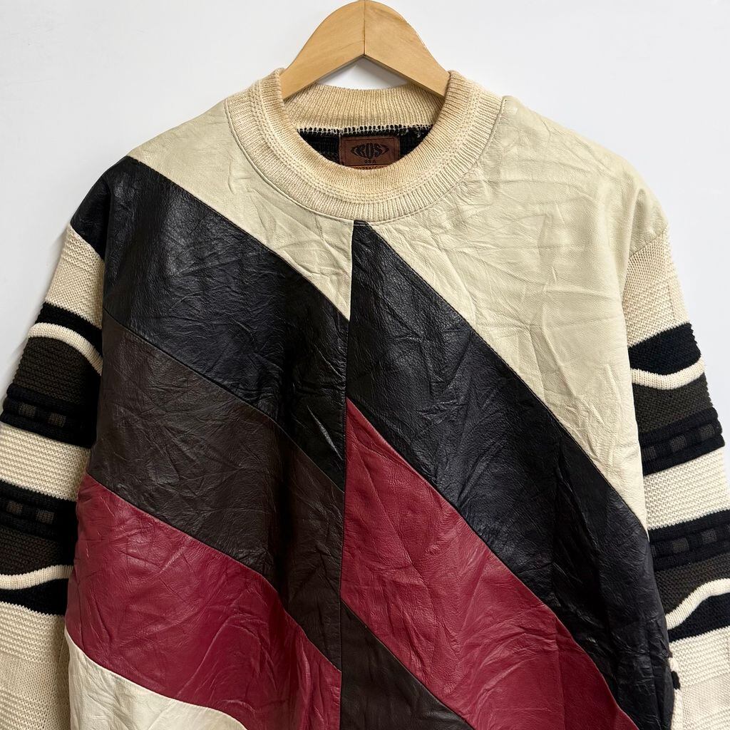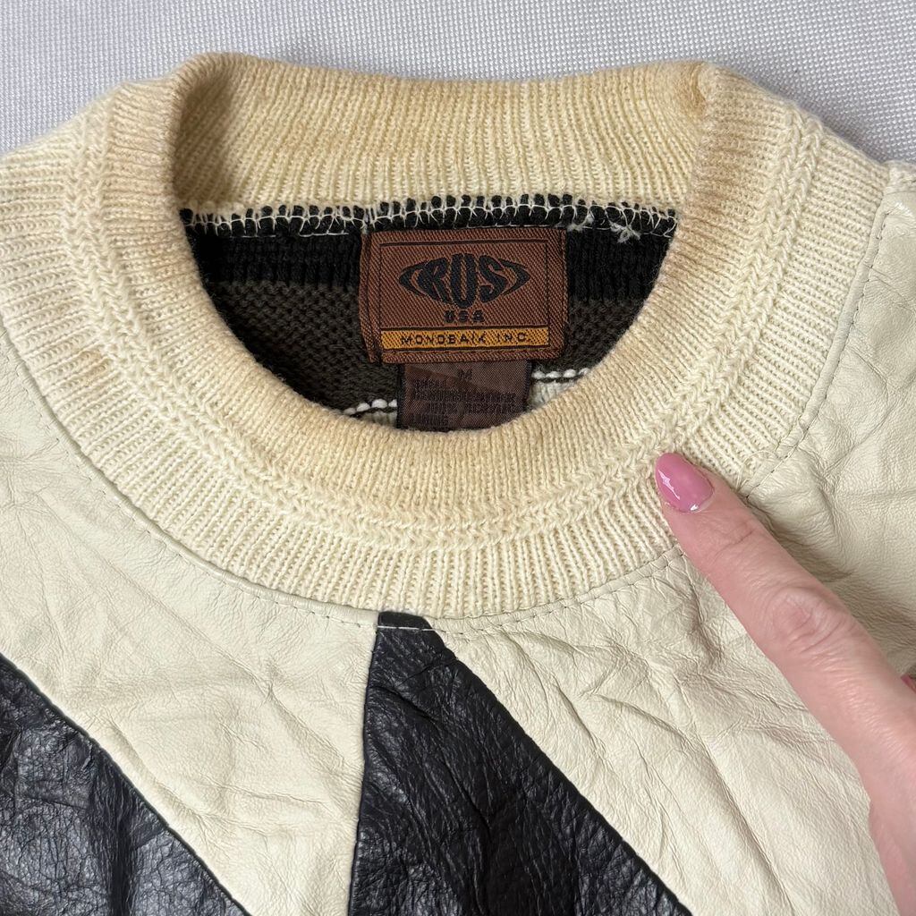 TRUST 切り替えデザイン 本革×アクリル レザーフロントセーター 3Dニット 白×黒×赤×茶 Mサイズ No.P070