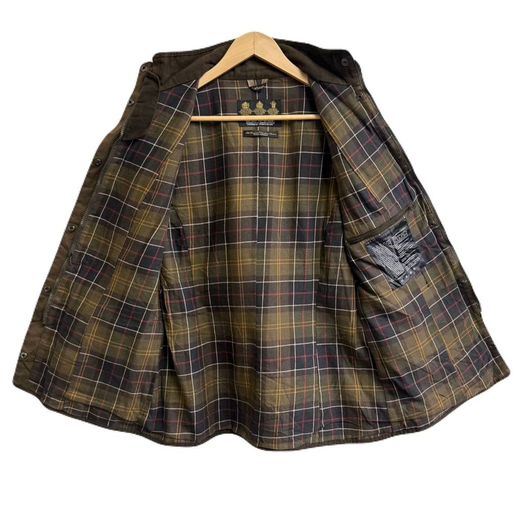 Barbour バブアー EURO ユーロ ユーティリティワックスジャケット 裏地チェック柄 スナップボタン 茶色 ブラウン No.P083