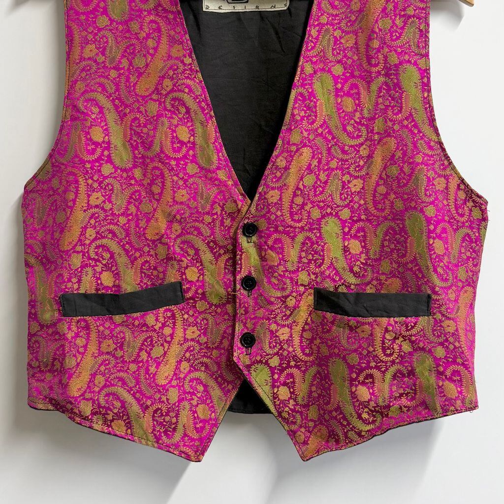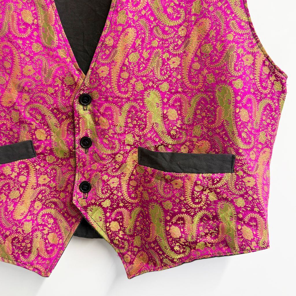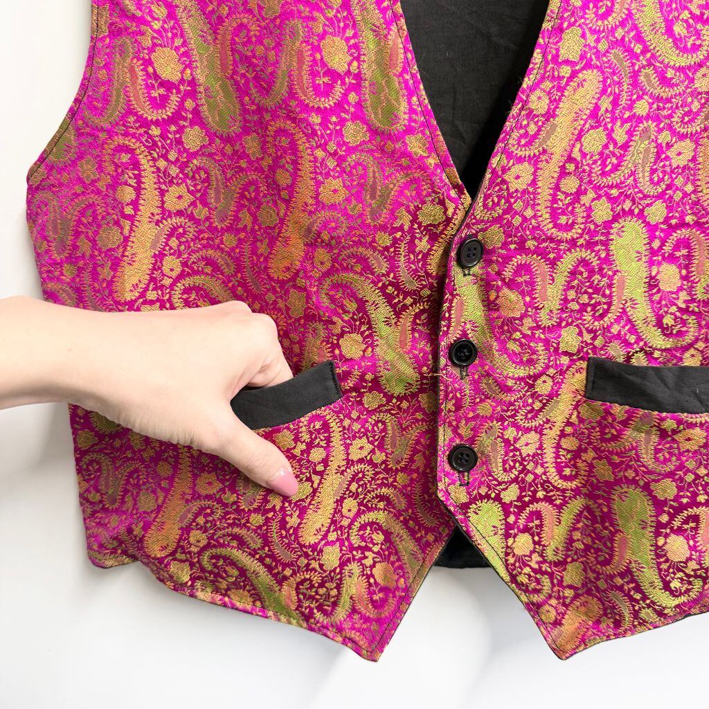eyescream ペイズリー柄ベスト フロントボタン ピンク×きみどり×ゴールド×黒×多色 No.P094
