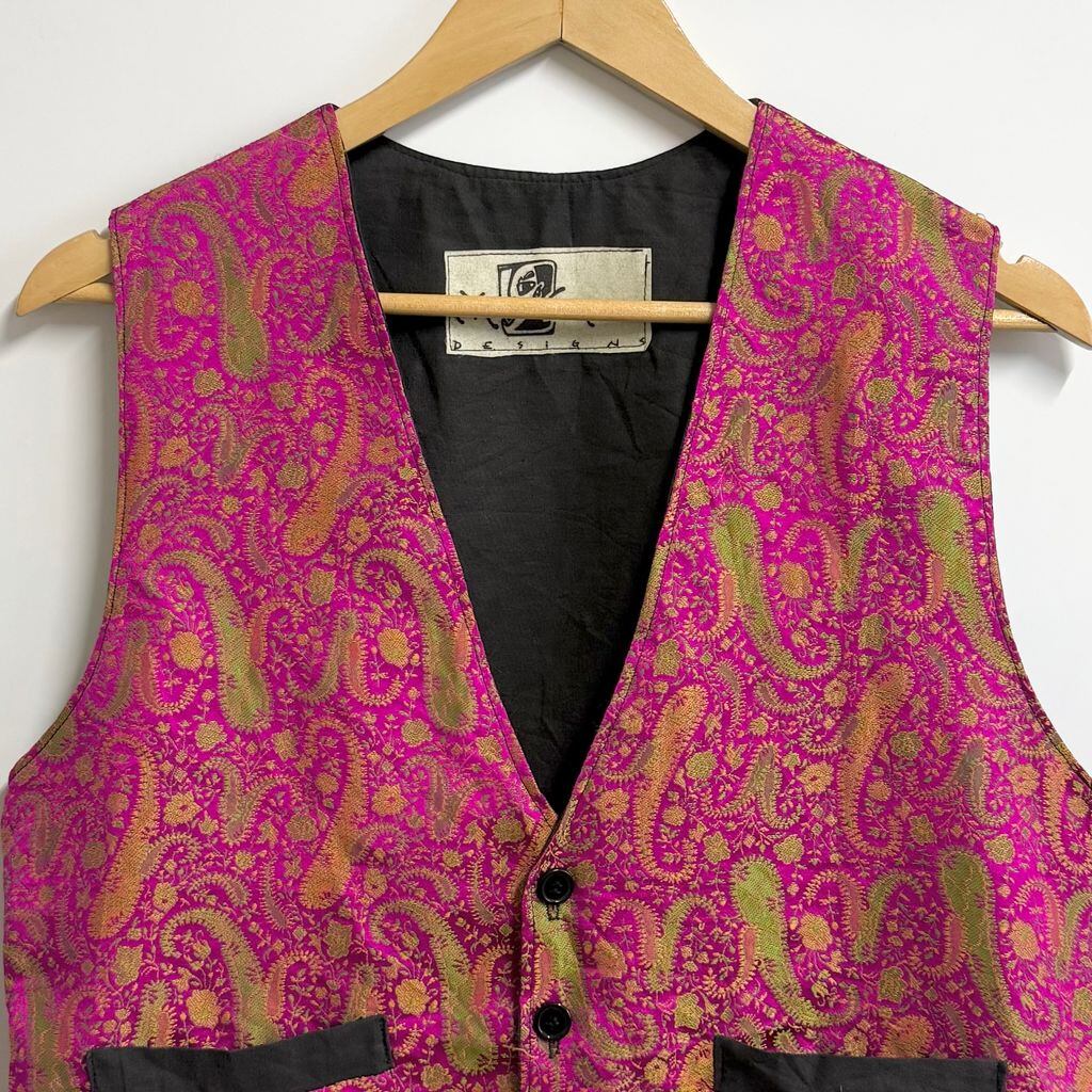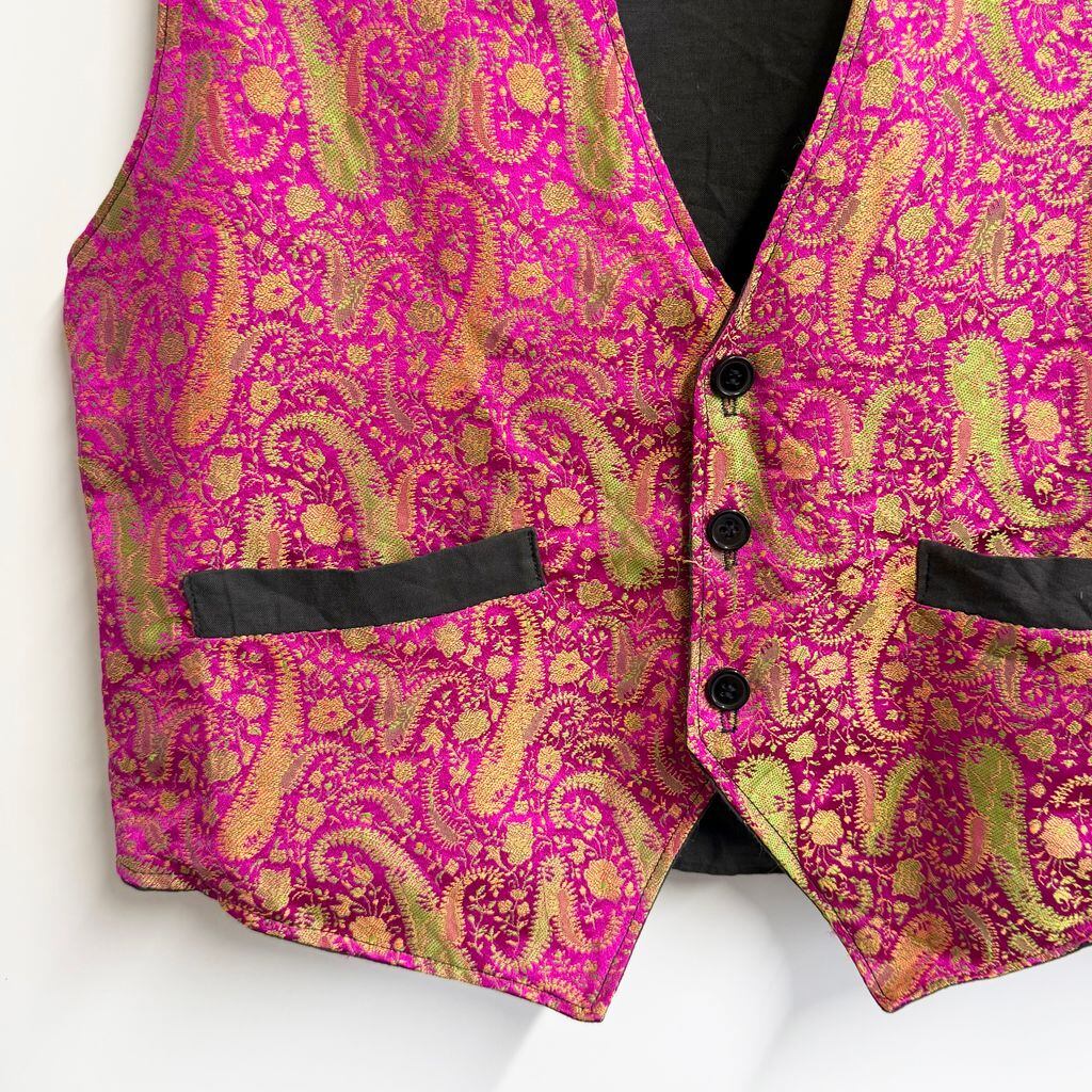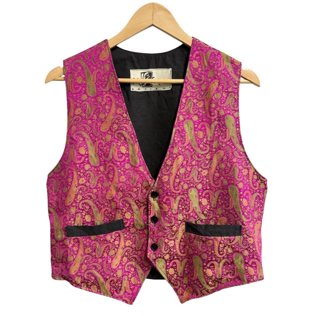 eyescream ペイズリー柄ベスト フロントボタン ピンク×きみどり×ゴールド×黒×多色 No.P094
