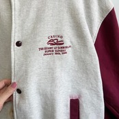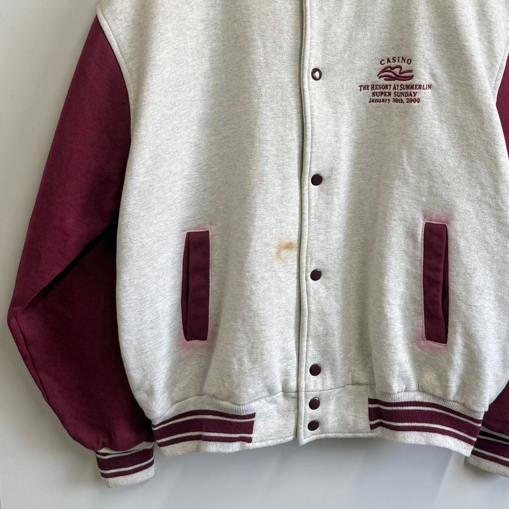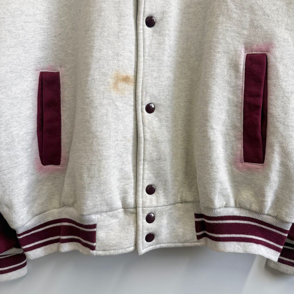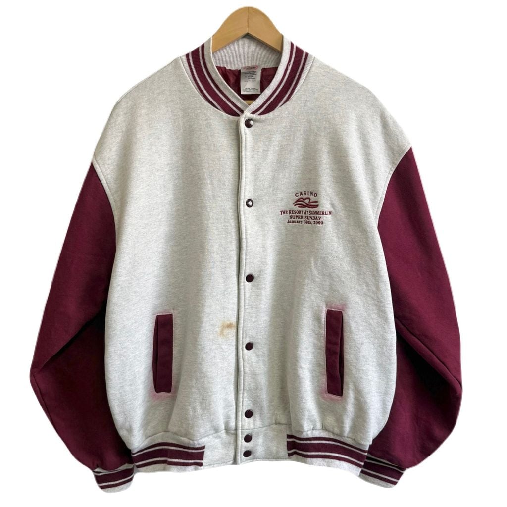 FRUIT OF THE LOOM フルーツオブザルーム スウェットスタジャン CASINO カジノ 刺繍 スナップボタン ライトグレー×ワインレッド バーガンディ XLサイズ No.P029