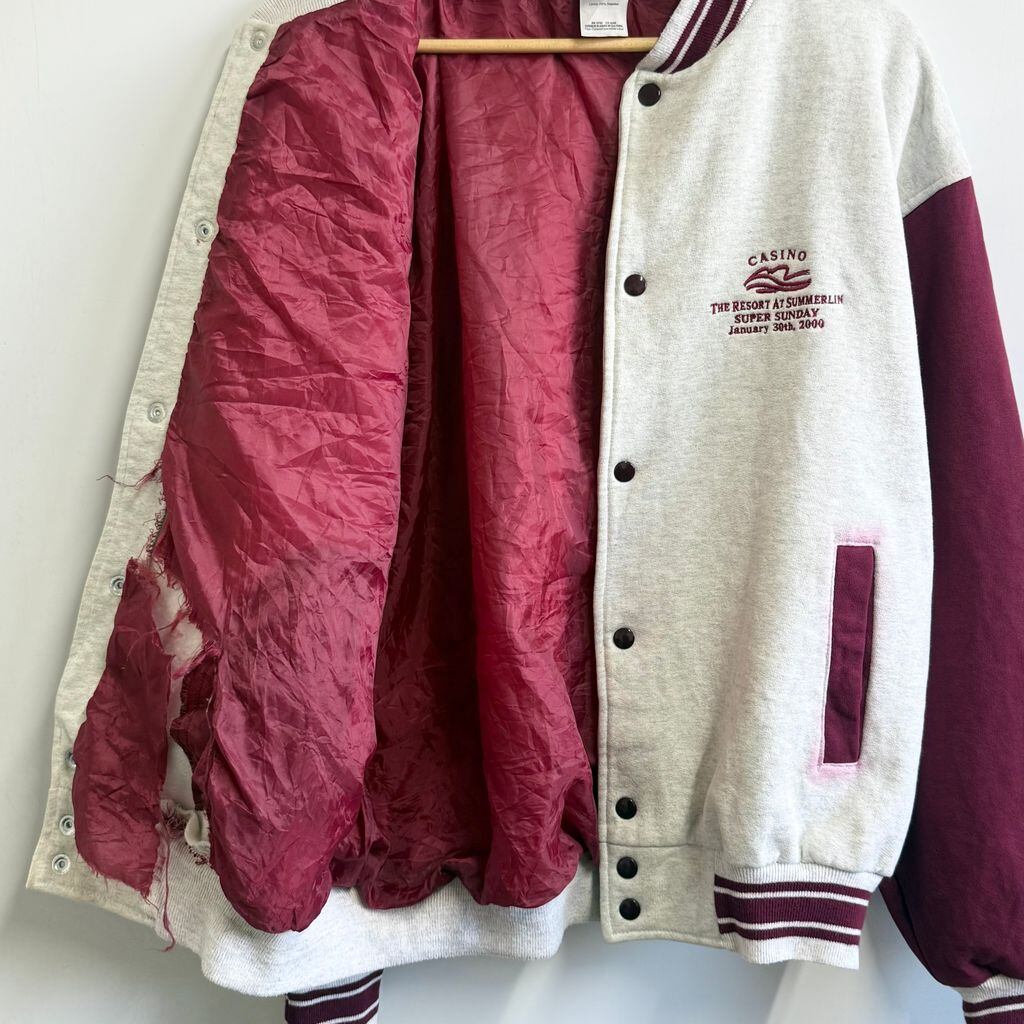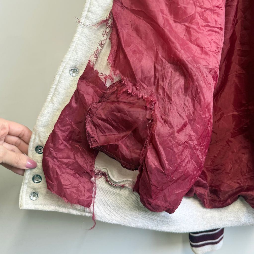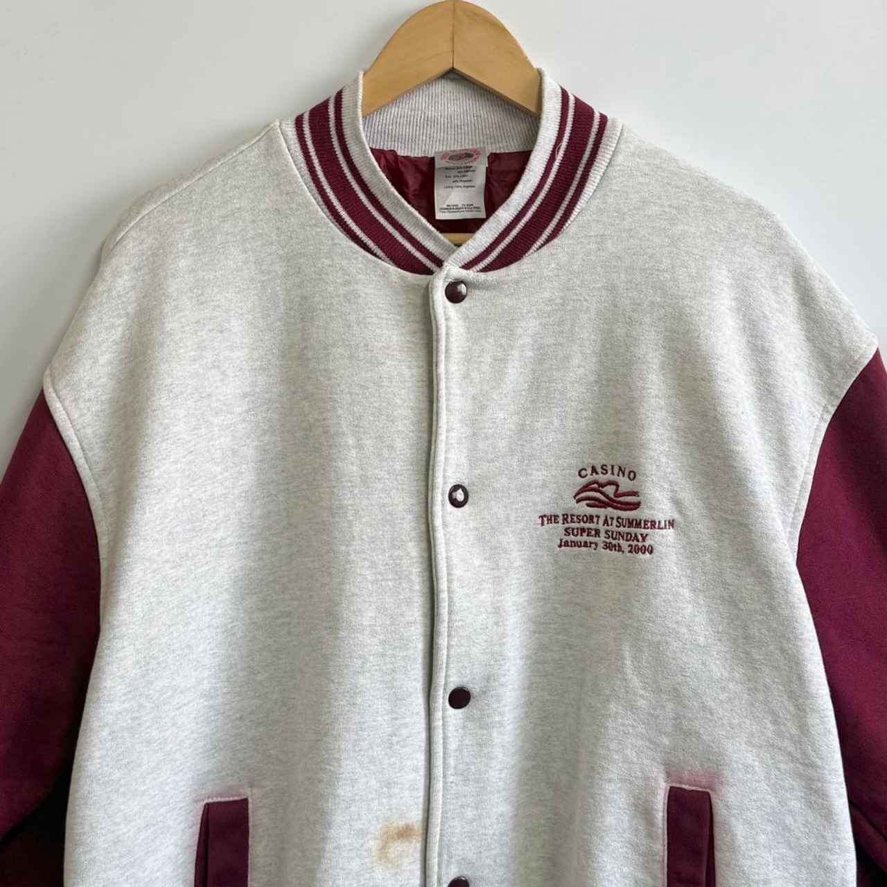 FRUIT OF THE LOOM フルーツオブザルーム スウェットスタジャン CASINO カジノ 刺繍 スナップボタン ライトグレー×ワインレッド バーガンディ XLサイズ No.P029