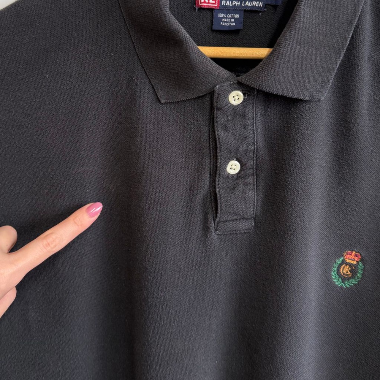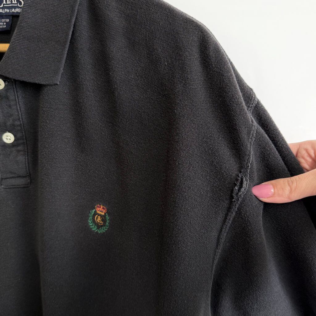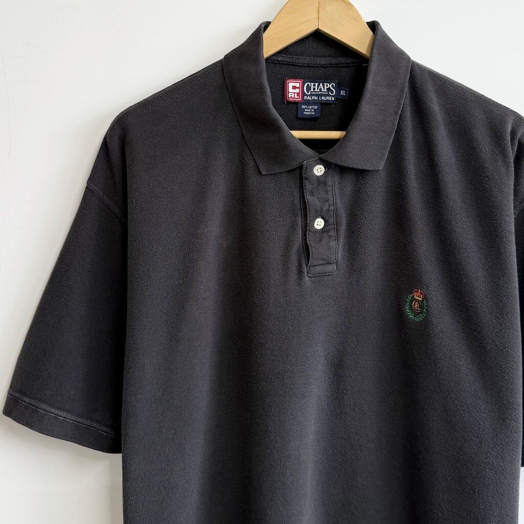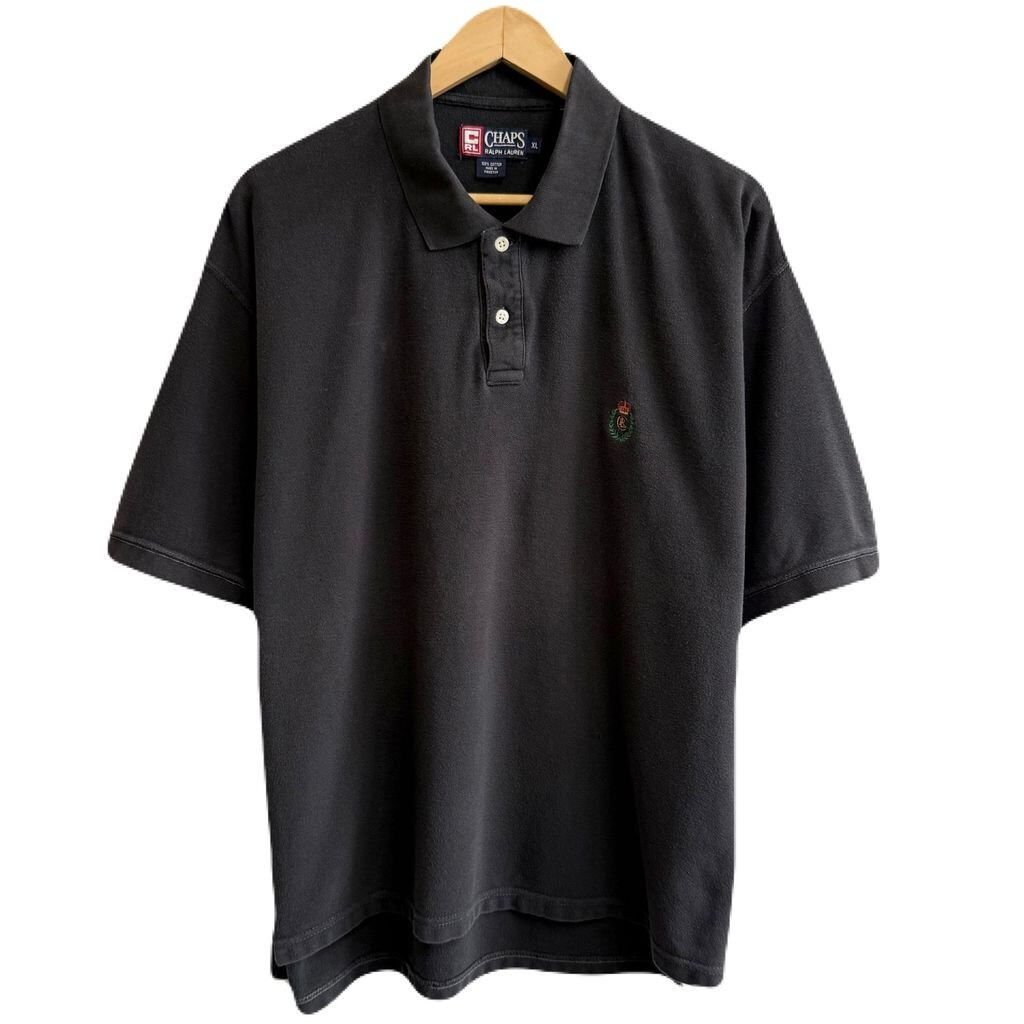 90's〜 CHAPS チャップス RALPH LAUREN ラルフローレン ポロシャツ 半袖 ワンポイントロゴ 刺繍 黒系 XLサイズ No.P099