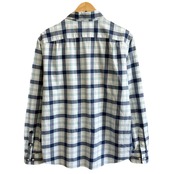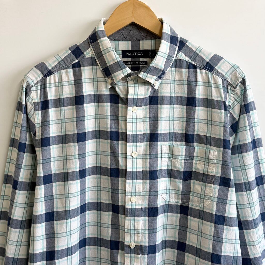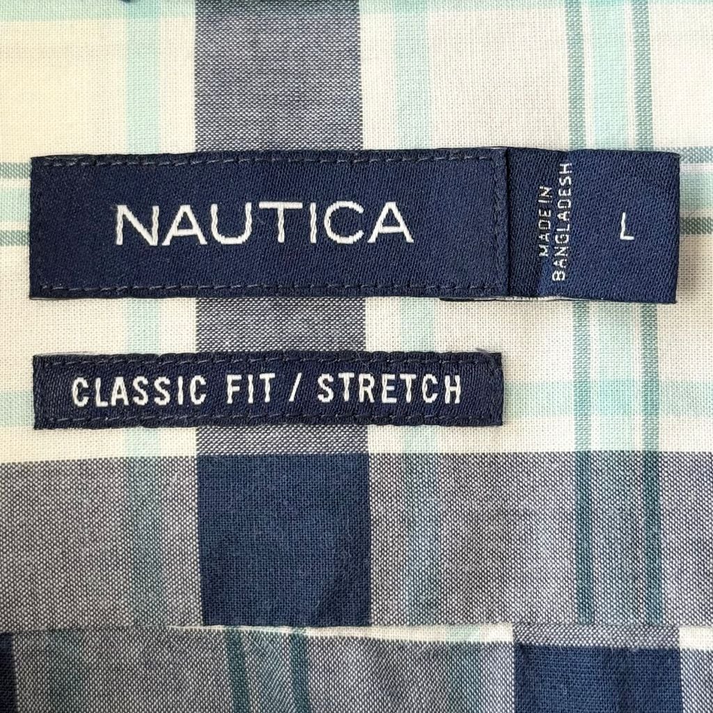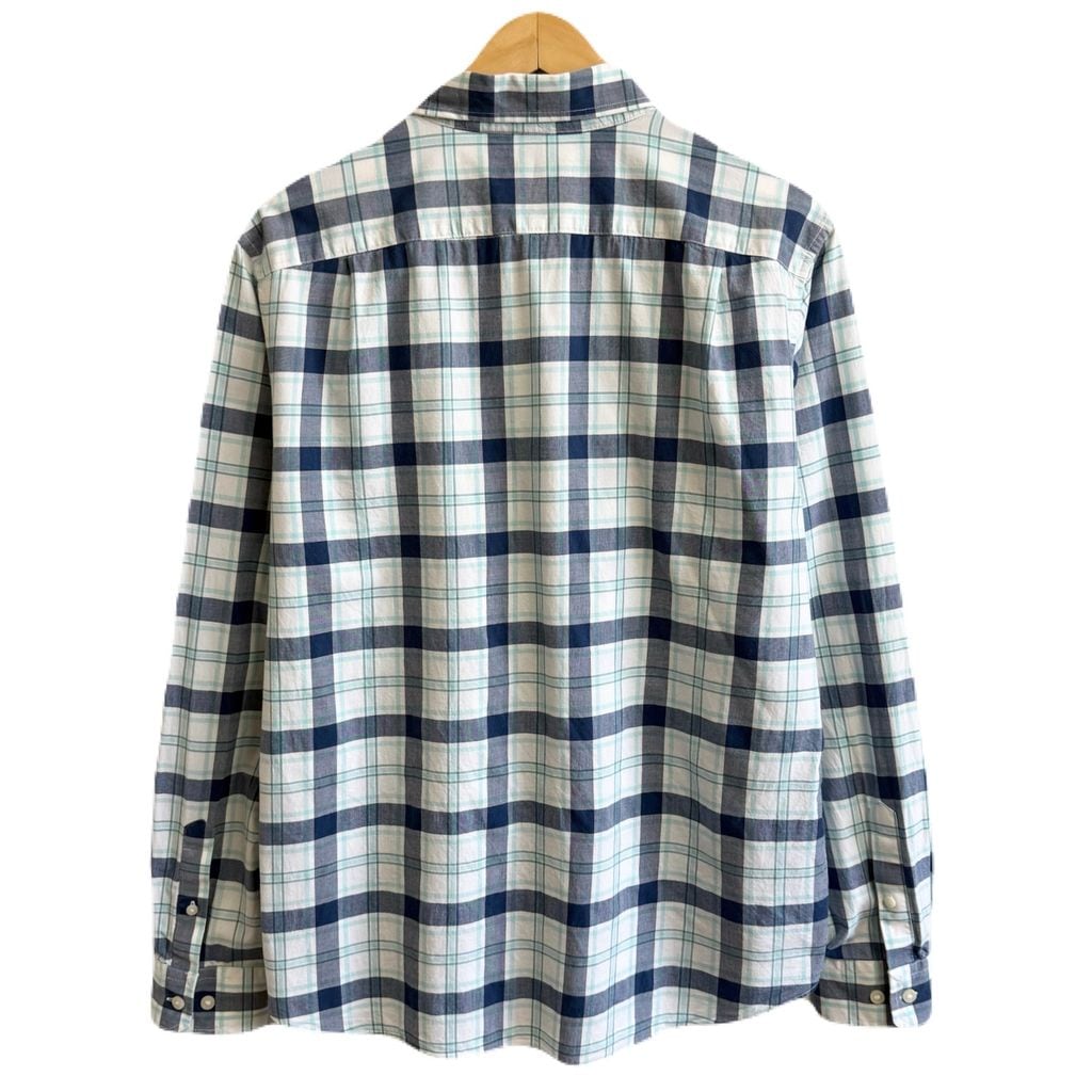 NAUTICA ノーティカ CLASSIC FIT ボタンダウンシャツ チェック柄 ポケット付き 長袖シャツ ワンポイントロゴ 刺繍 白×紺×水色×グリーン Lサイズ No.P105