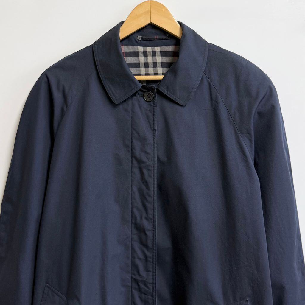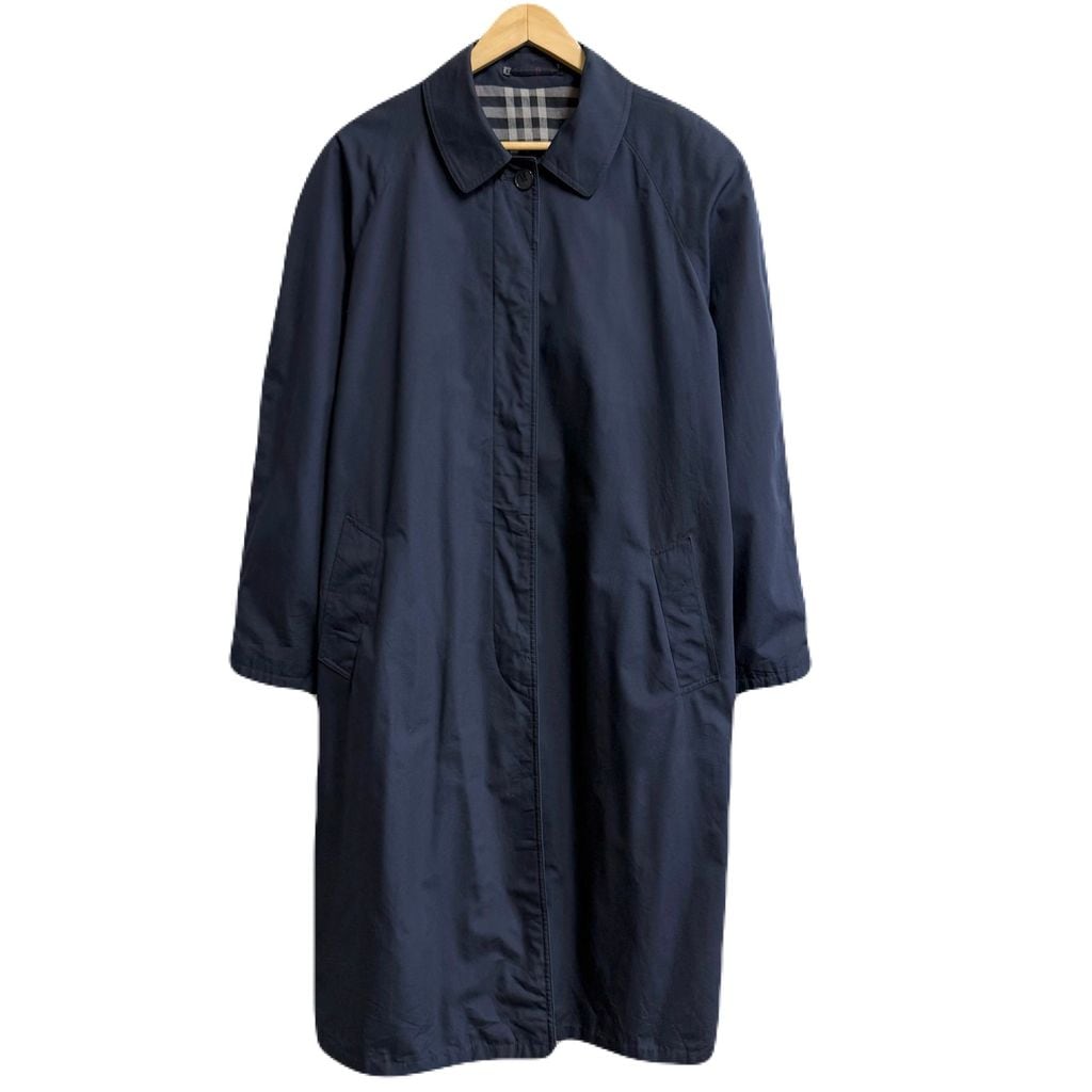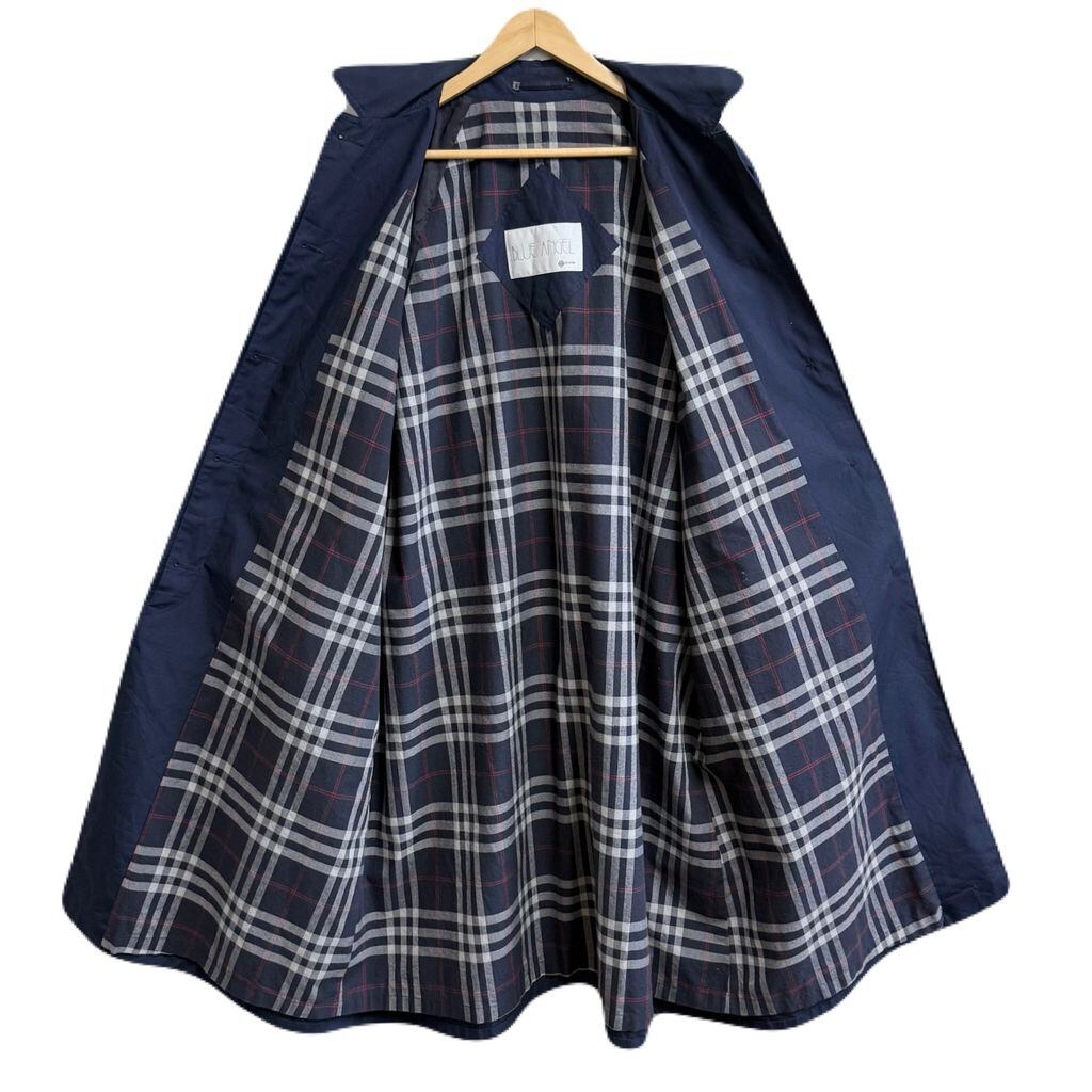 BLUE ANGEL ステンカラーコート バルマカーンコート 裏地チェック柄 フロントボタン 紺 ネイビー No.P125