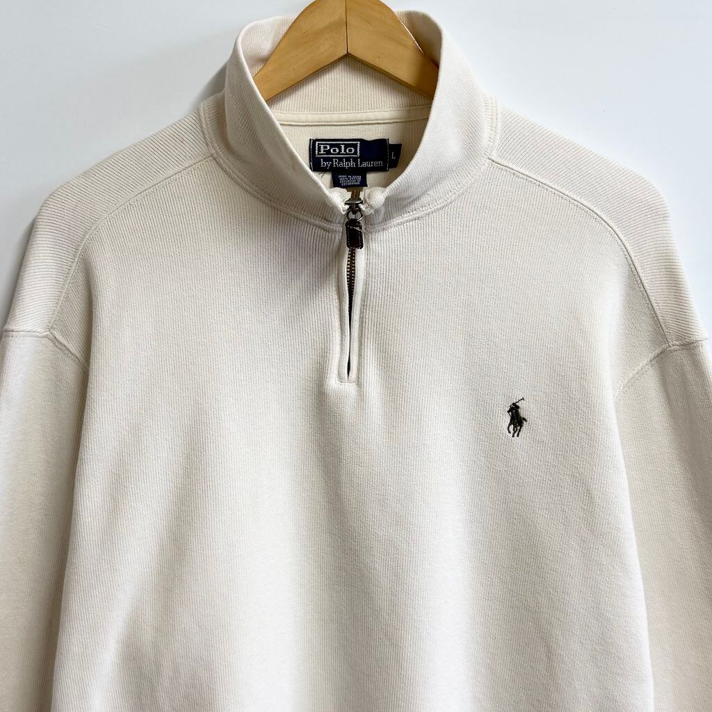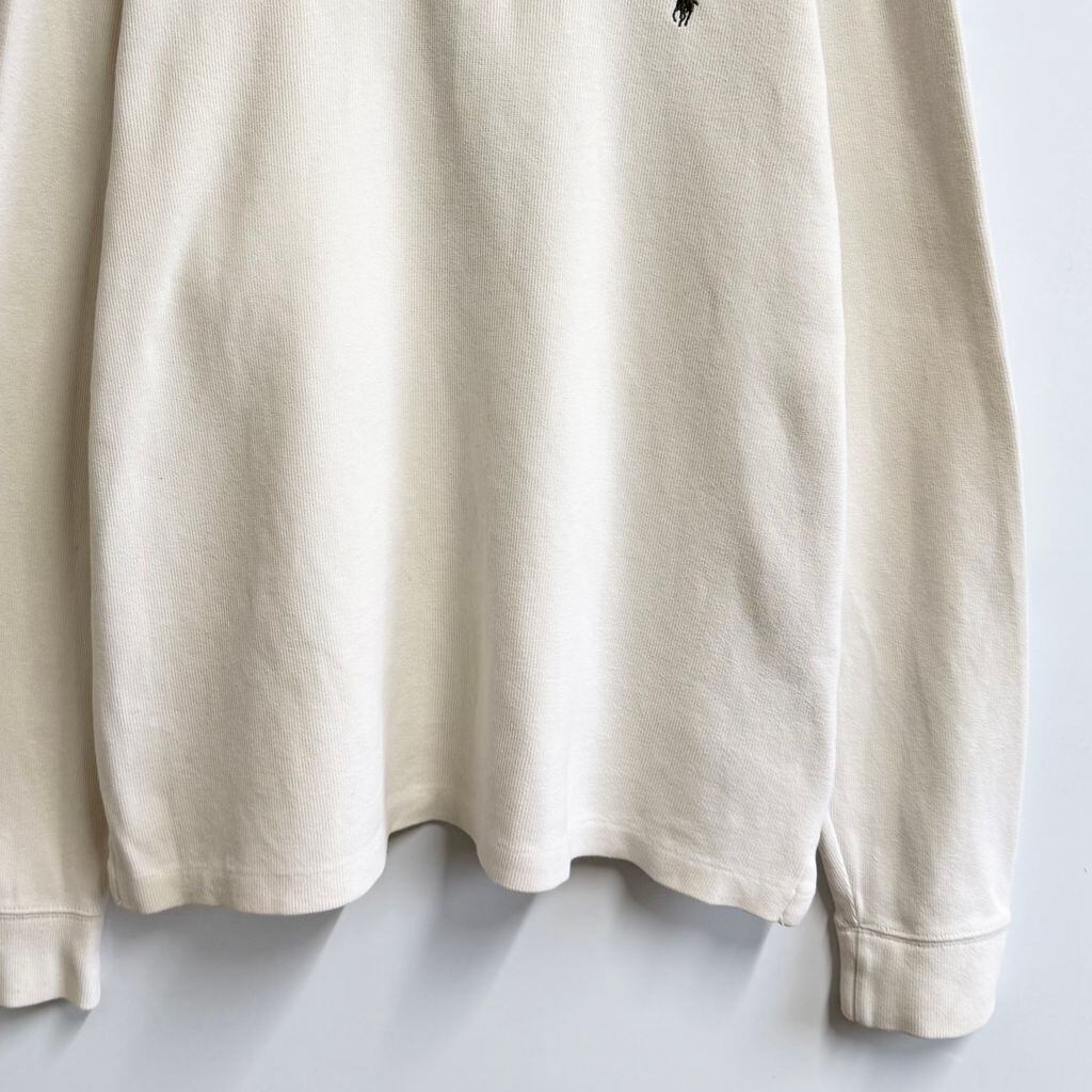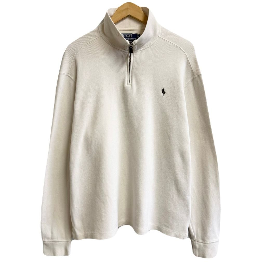 Polo Ralph Lauren ポロ ラルフローレン ハーフジップ コットンニット プルオーバー ワンポイントロゴ 刺繍 アイボリー オフホワイト Lサイズ No.P134