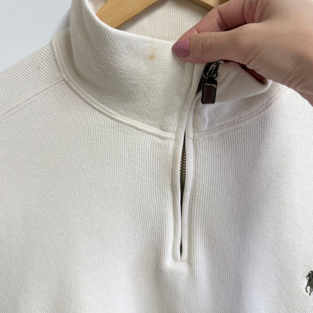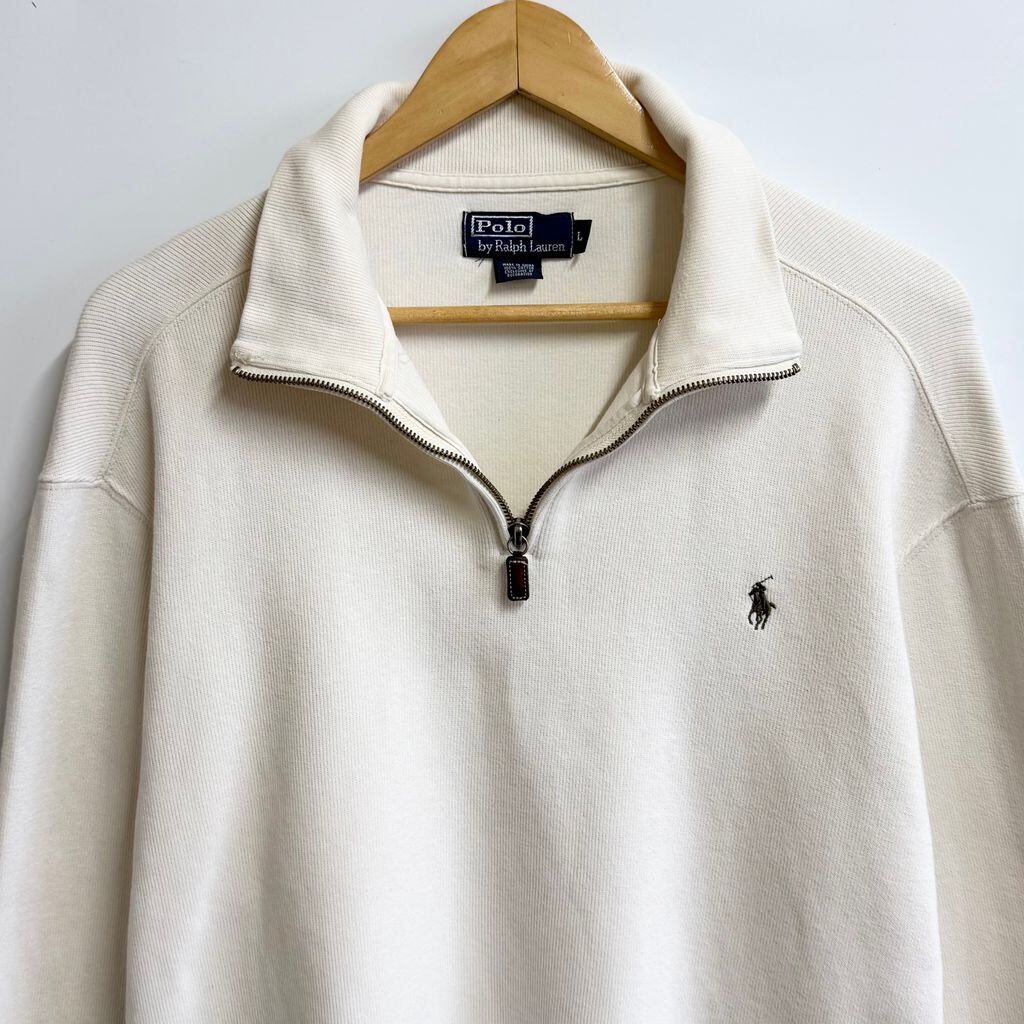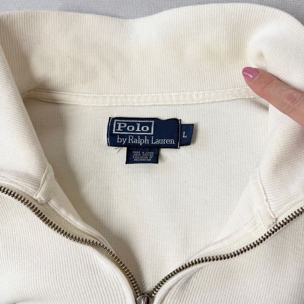 Polo Ralph Lauren ポロ ラルフローレン ハーフジップ コットンニット プルオーバー ワンポイントロゴ 刺繍 アイボリー オフホワイト Lサイズ No.P134