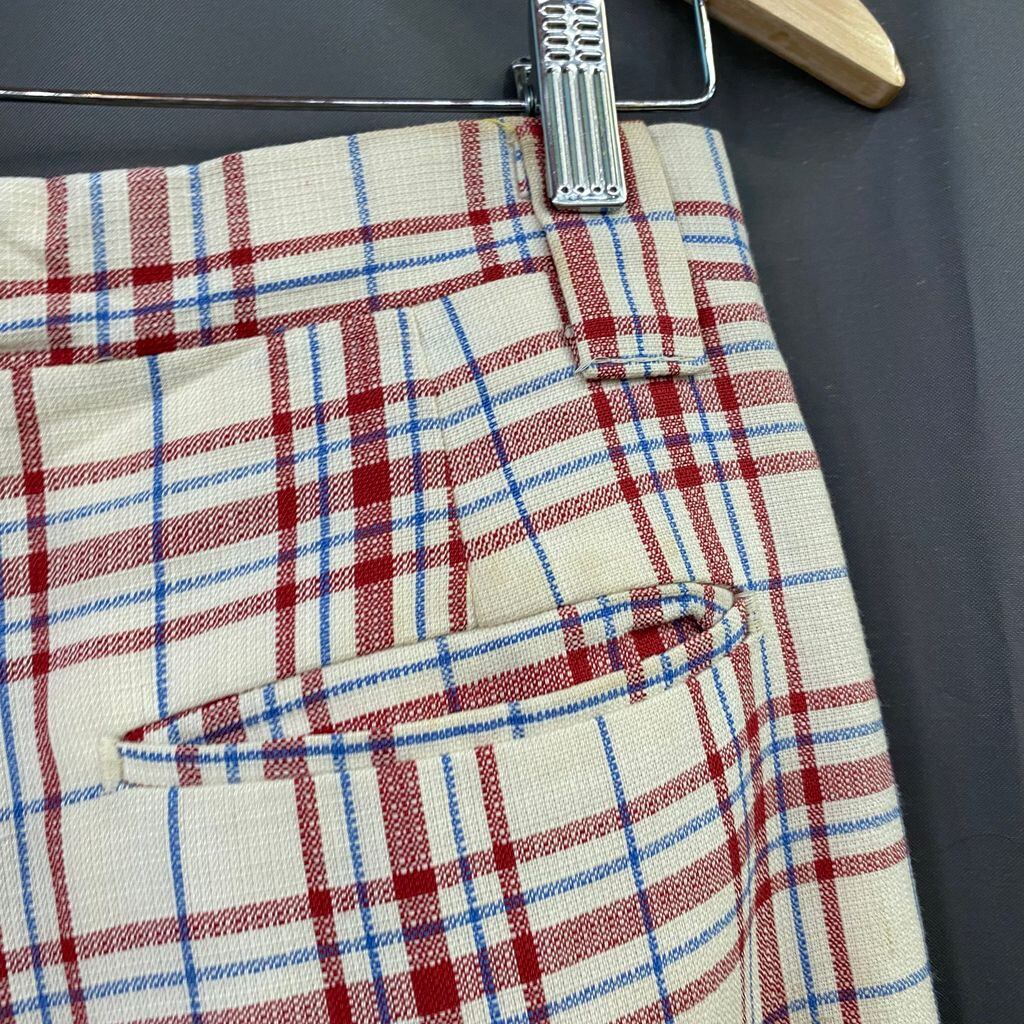 70s HAGGAR ハガー フレアパンツ スラックス チェック柄 レッド ホワイト ブルー No.S204