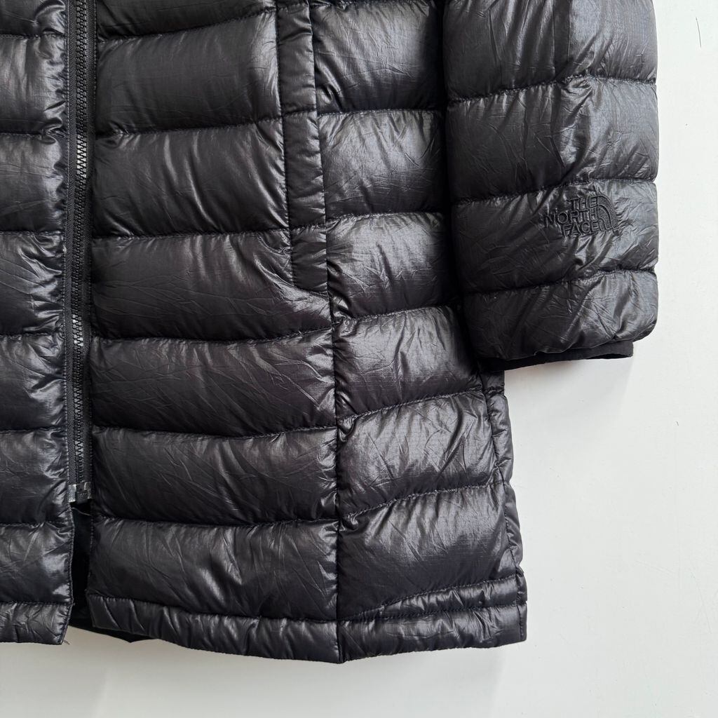 (レディース) THE NORTH FACE ザノースフェイス ロングダウンコート ダウンジャケット ロゴ刺繍 黒 ブラック Mサイズ No.P142